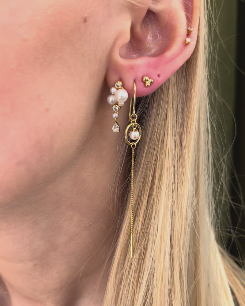 Alura Eclipse Single Earstud 41 is an elegant and eye-catching earring where sparkling zirconia meets soft freshwater pearls in a harmonious design. The small pearls and stones are gathered in an organic formation that gives a light and feminine expression along the ear.