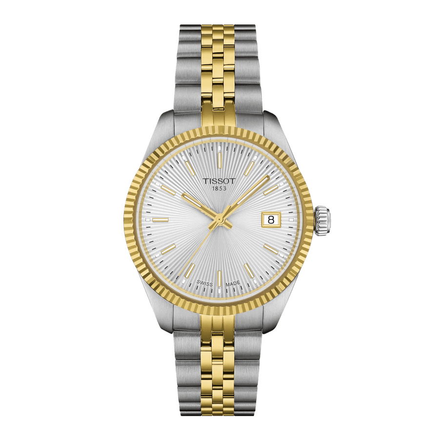 The Tissot Ballade 34mm is an elegant and classic addition to any jewelery collection. The watch combines a sophisticated design with modern functionality and is highlighted by a beautiful guilloché dial and a stylish fluted bezel. The replaceable quick-release chain ensures maximum versatility, while the gold-colored PVD details add a luxurious look.