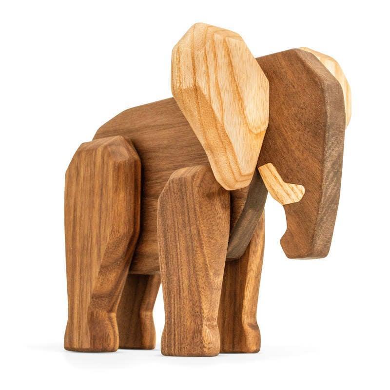 Far Elefant is made of North American walnut and ash, which provide great contrasts in the wood's natural colors and a warm finish. The figure is CE-approved from 1 year and thus meets the EU's safety requirements for toys.