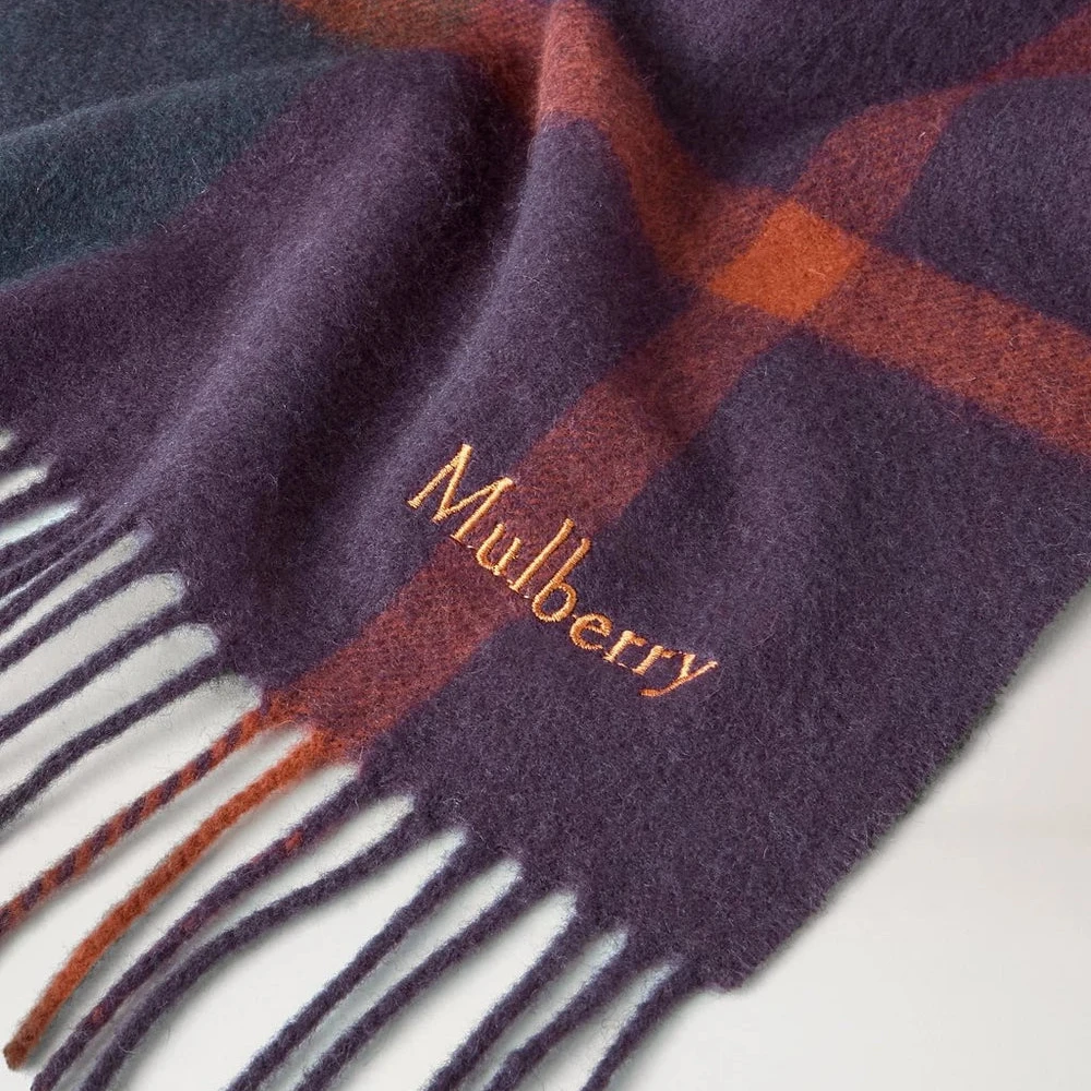 The timeless checked pattern and the fine fringes at the ends give a stylish and sophisticated look, while the embroidered Mulberrylogo adds an exclusive finish. A must-have accessory that suits both everyday life and elegant occasions.