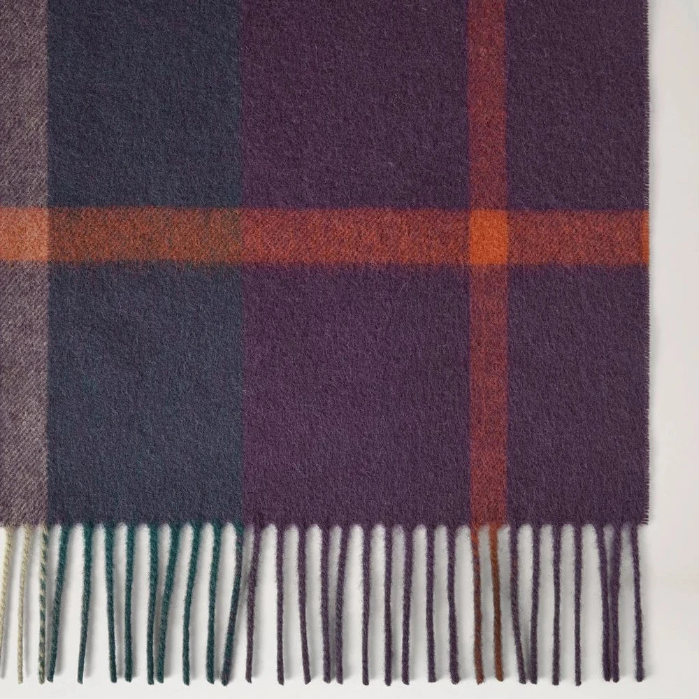 Mulberry Small Check Merino Wool Scarf Juniper Green & Deep Aubergine