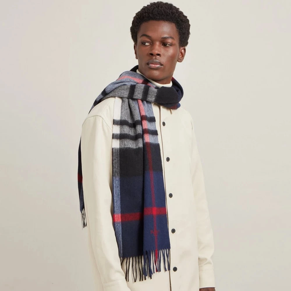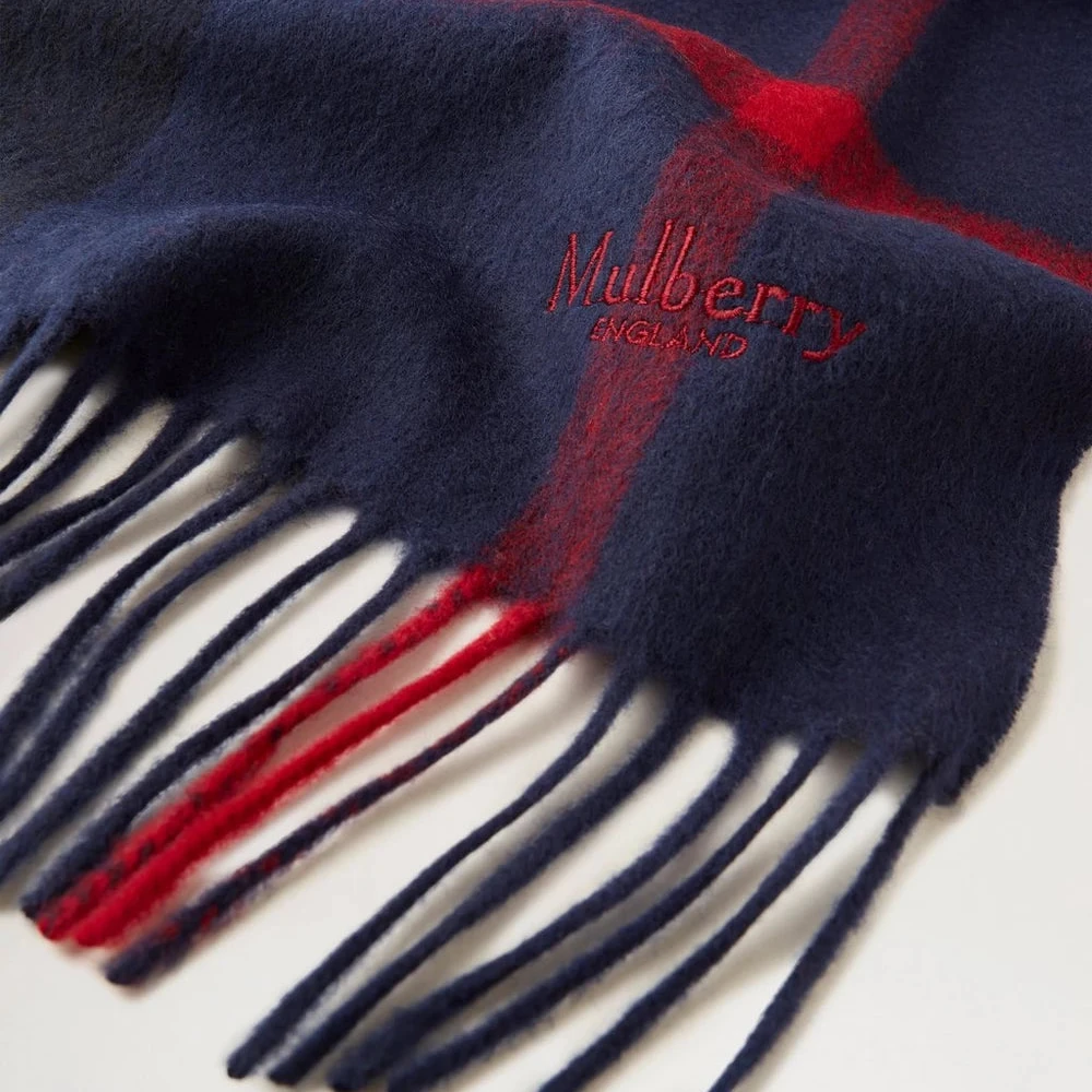 Mulberry Small Check Merino Wool Scarf Night Sky-Lancaster Red