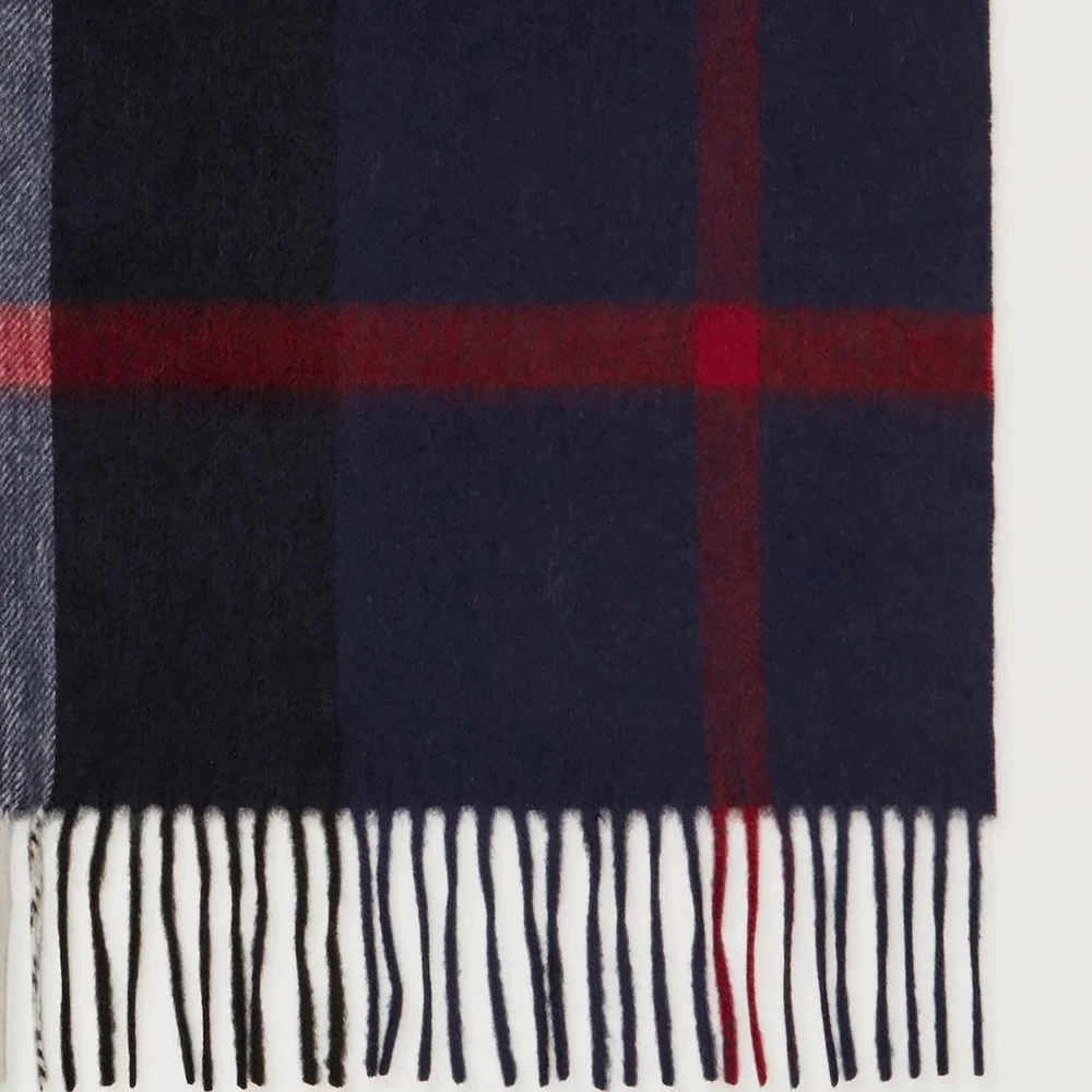 Mulberry Small Check Merino Wool Scarf – Night Sky & Lancaster Red / Wool Scarf in Dark Blue and Red: