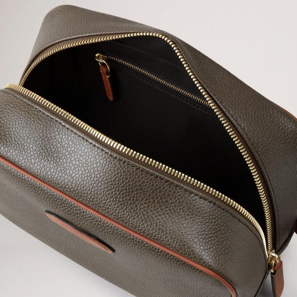 Mulberry Wash Case is a practical and stylish travel toilet bag. It has a large compartment and an internal zipped pocket.