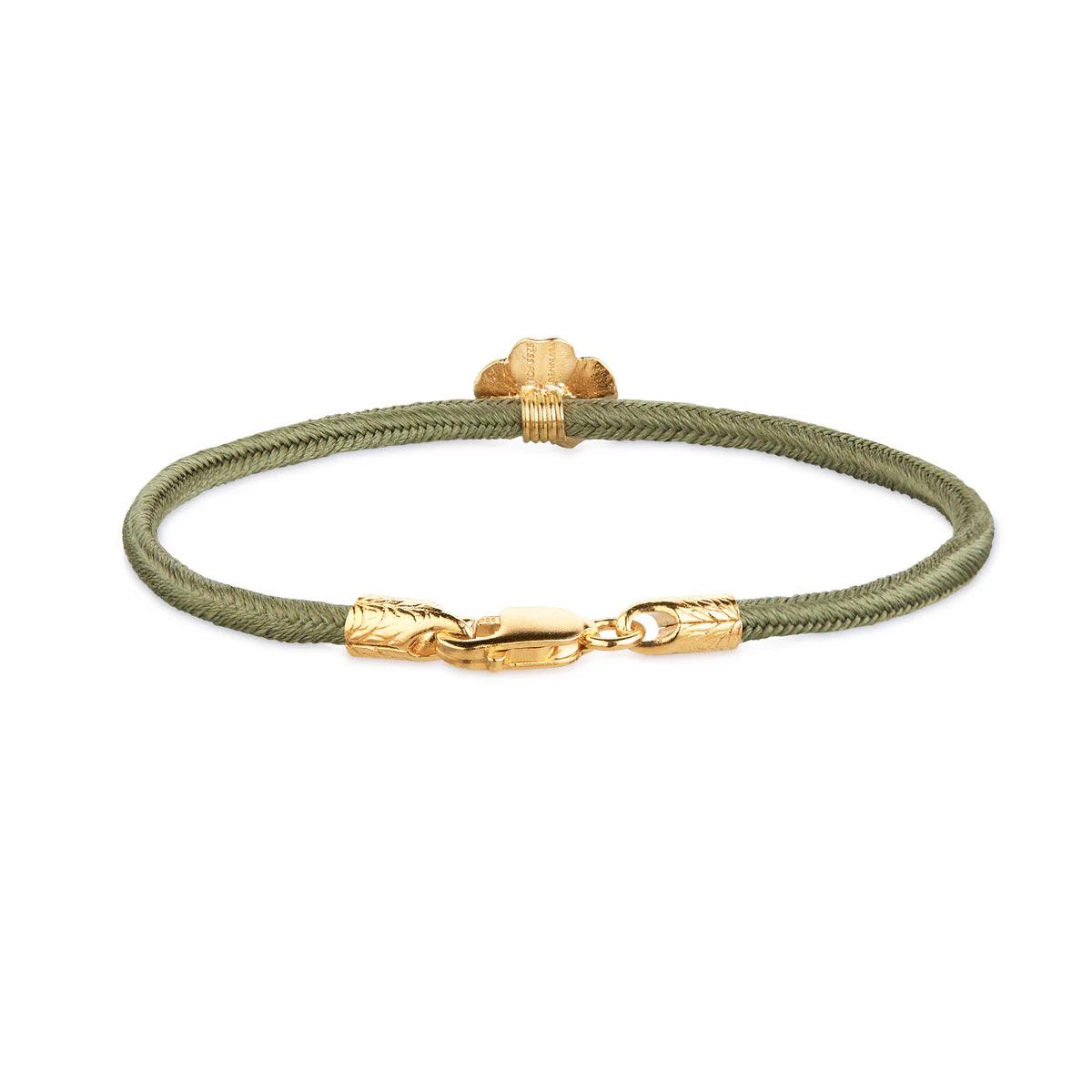 Flora Danica Four Leaf Clover Silk Bracelet Olive - Gold Plated