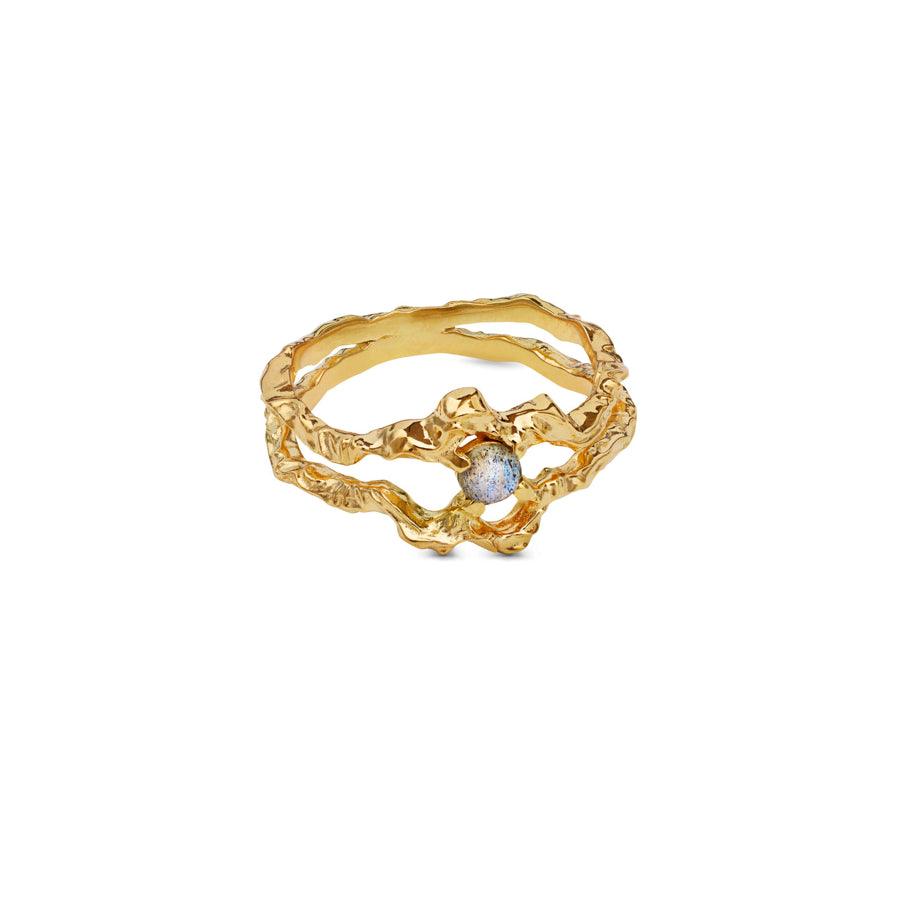 Beauty and mystery meet in the Shelly Ringen. Its shape is abstract and reminiscent of an open seashell, which hides a deep blue, faceted labradorite stone. This ring is more than just a piece of jewelry; it is a story about the hidden treasures of the sea and the reflection of the stars in the waves of the night.