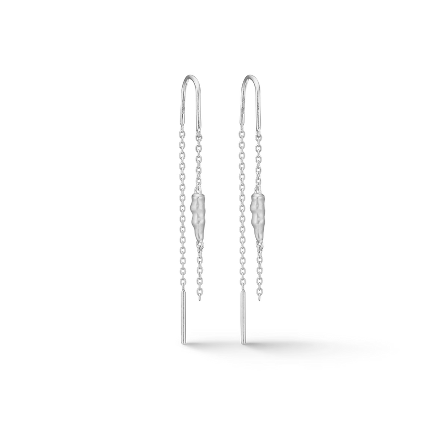 Icicle earrings in 925 sterling silver. Inspired by winter light and the clear lines of icicles, the sleek, faceted earrings have a polished surface that reflects the light beautifully and accentuates their elegant shape. The earrings measure 32 mm and can be worn alone for a minimalistic, cool look or styled with small earrings and the matching Icicle ring for extra sparkle for a party.
