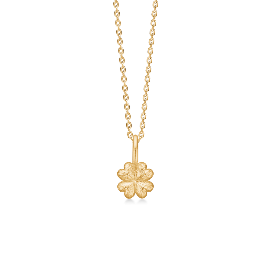 A delicate clover pendant with four heart-shaped leaves that unites femininity and edge. The subtle texture in the surface gives the piece a raw twist, which makes it perfect both for everyday wear and for adding a unique touch to your party look.
