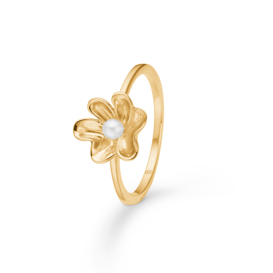 Mads Z Pearlily Ring in 14 carat gold with white cultured pearl: