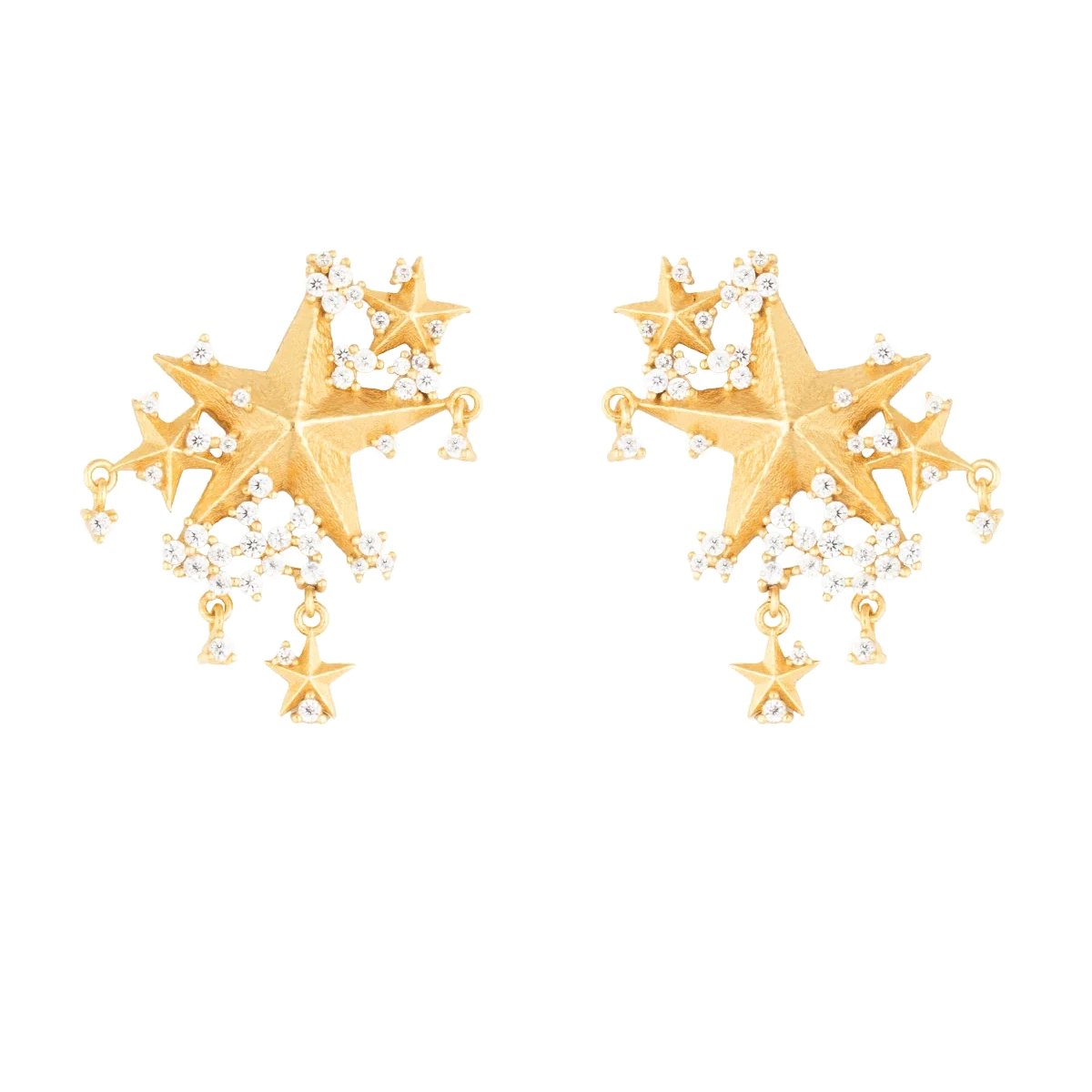 Vincent Night Remains Star Earrings Gold Plated – Sophisticated Star Motif Earrings with White Crystals: