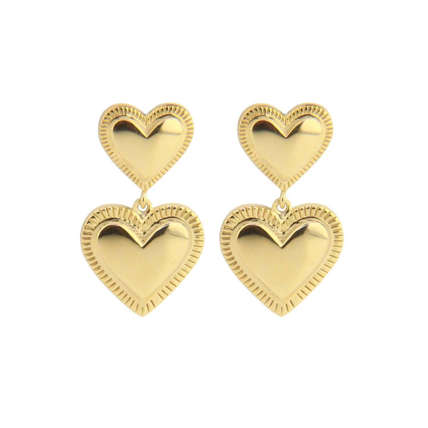 - Design: Heart-shaped earrings with detailed rim