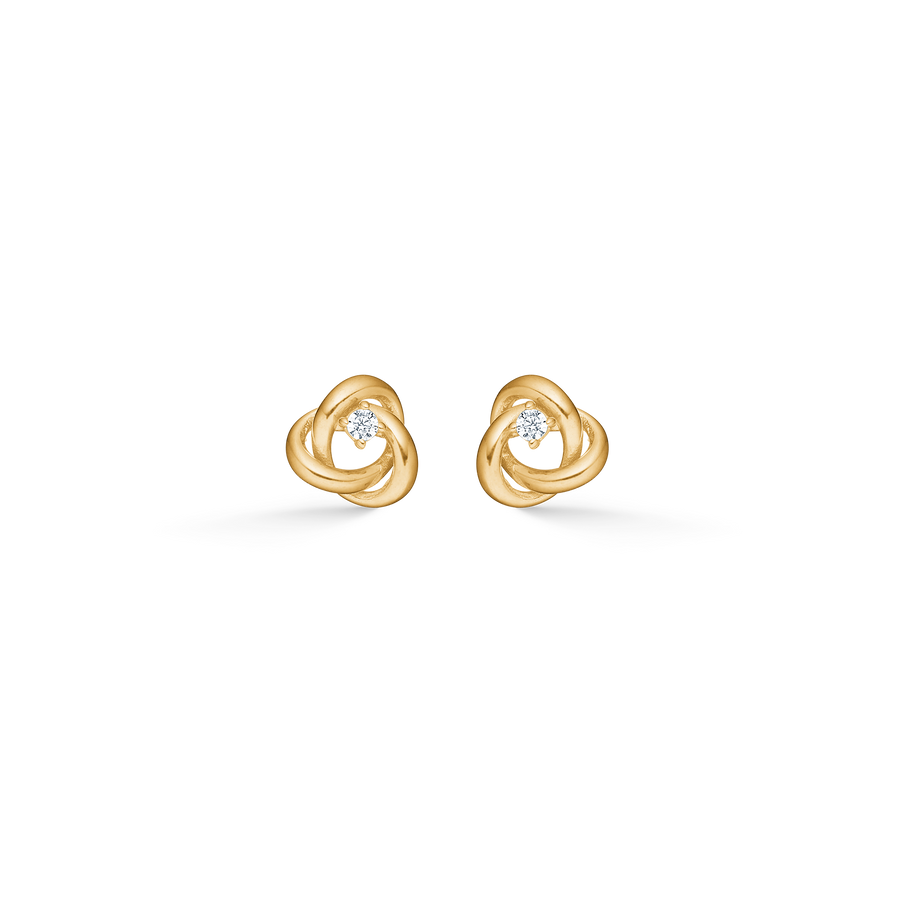 Mads Z Amara ear studs are created in 8 carat gold with a sculptural, braided knot shape that gives a timeless and organic expression. In the middle sits a clear brilliant-cut cubic zirconia in a grab socket, which reflects the light beautifully and adds a touch of shine to the design.