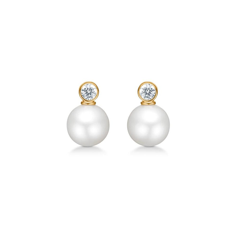 Mads Z Iris Pearl Stud Earrings in 8 Carat Gold with Zirconia:
