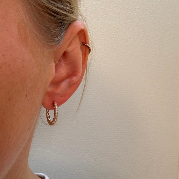 Add a touch of elegance to your style with the LA BOHEME creoles, made in 8 carat gold. These beautiful earrings measure 18 mm and are adorned with cubic zirconia that gives a sparkling finish. The LA BOHEME earrings are part of the Mads Z White Label collection and are perfect for both everyday use and festive occasions.