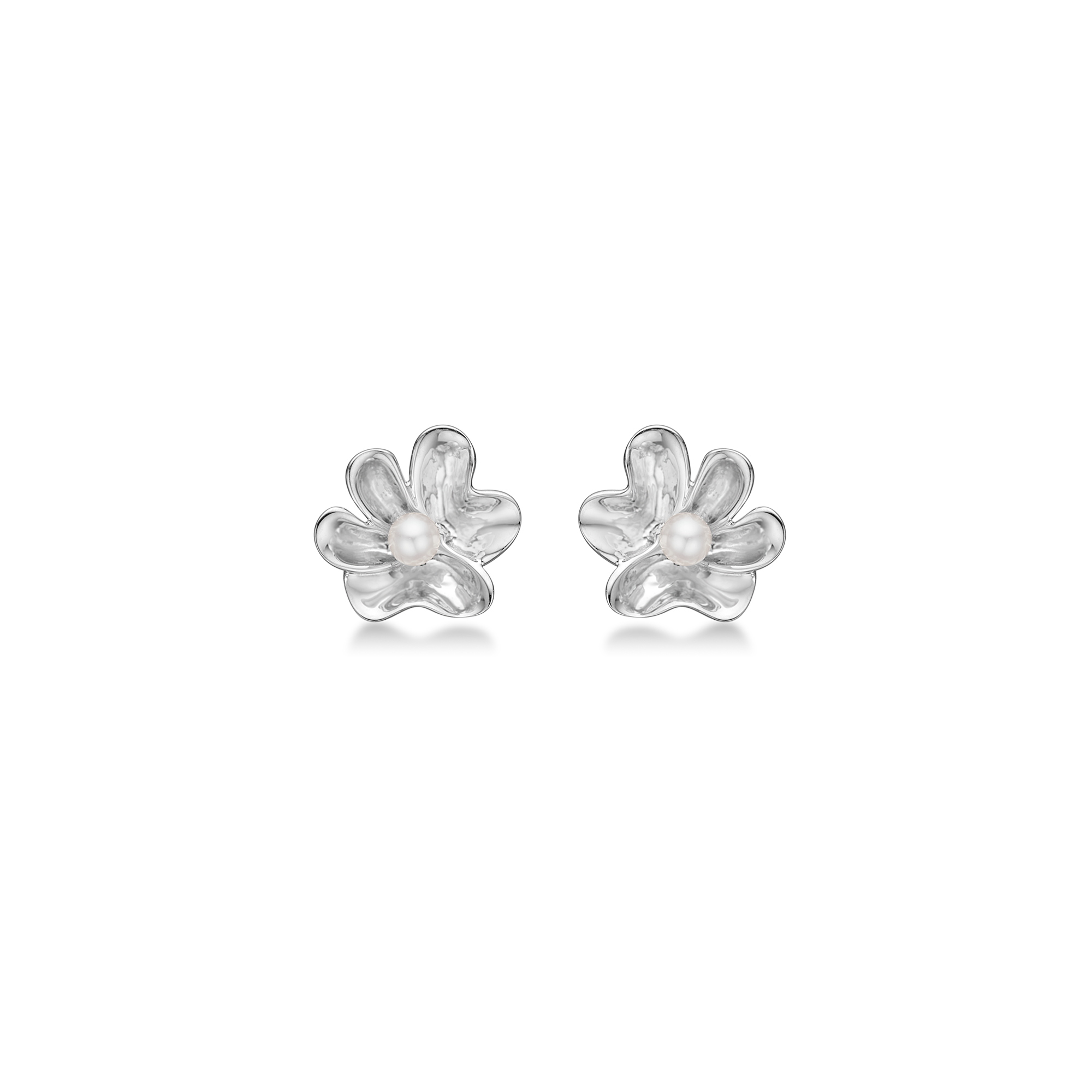 Designer Mads Ziegler has drawn inspiration from the organic forms of botany and translated the simplicity of nature's petals into a modern piece of jewelery with clean lines. The 9 mm small ear studs are made with attention to detail, where polished silver and the white pearl create a harmonious contrast.