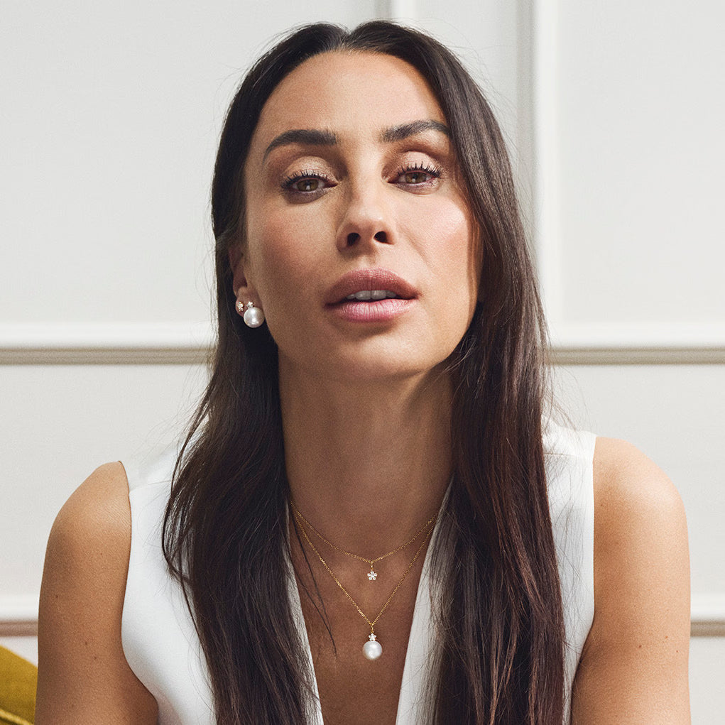 The Mads Z Céleste pendant is a poetic symbol of harmony and celestial beauty. Crafted in 14 carat gold and adorned with six brilliant-cut diamonds (0.07 ct. Wesselton SI) and a round, white cultured pearl, the warm gold and the soft glow of the pearl combine in a calm, balanced expression. The star-shaped diamonds form a clear focal point above the pearl, catching the light with subtle precision.
