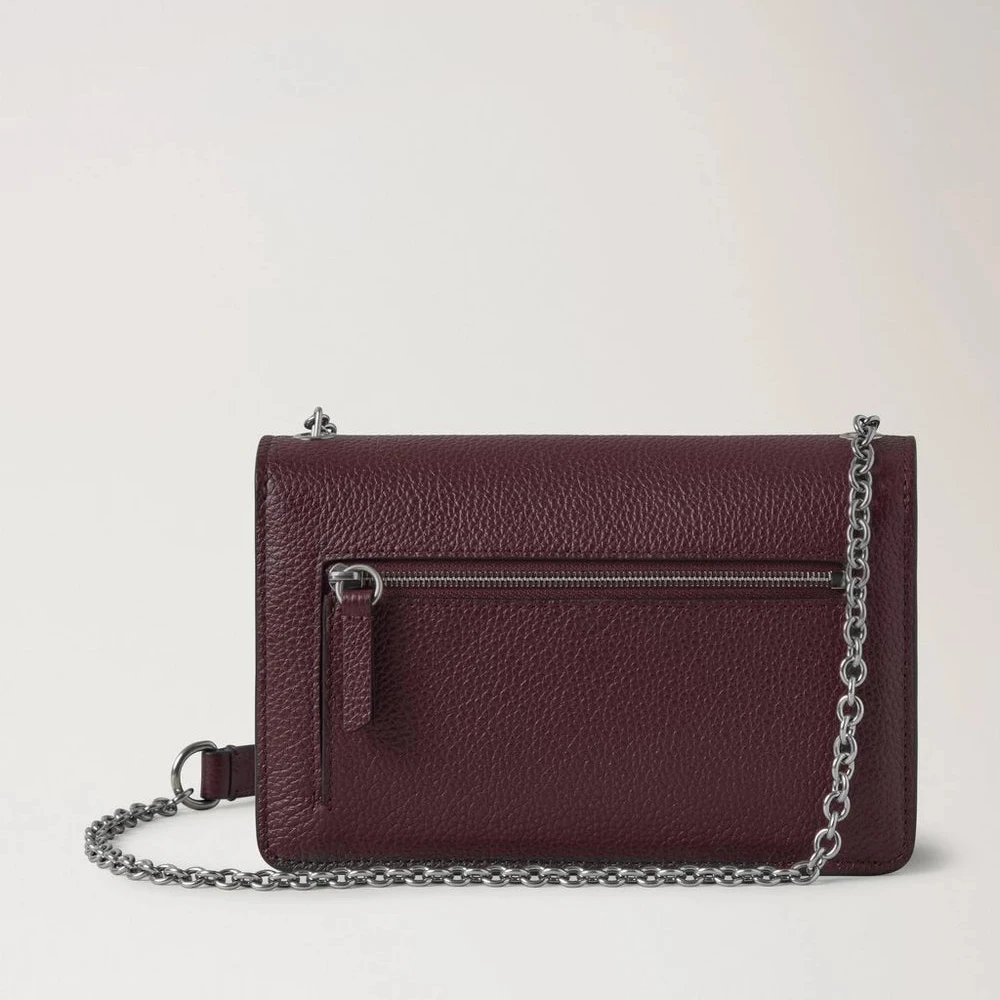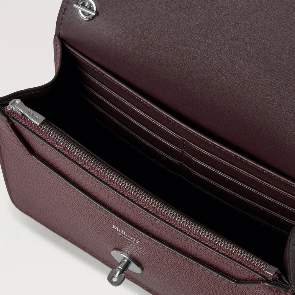 Small Darley in the color Black Cherry from Mulberry, features the iconic postman's lock in silver hardware. The simple and classic look means that you can use it for both everyday life and parties. It has a place for eight credit cards and a practical zipped pocket.