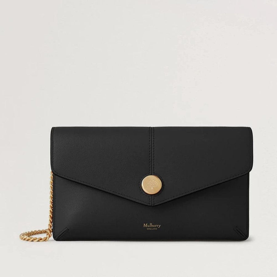 Mulberry Press Stud Pochette on Chain Black Micro Classic Grain