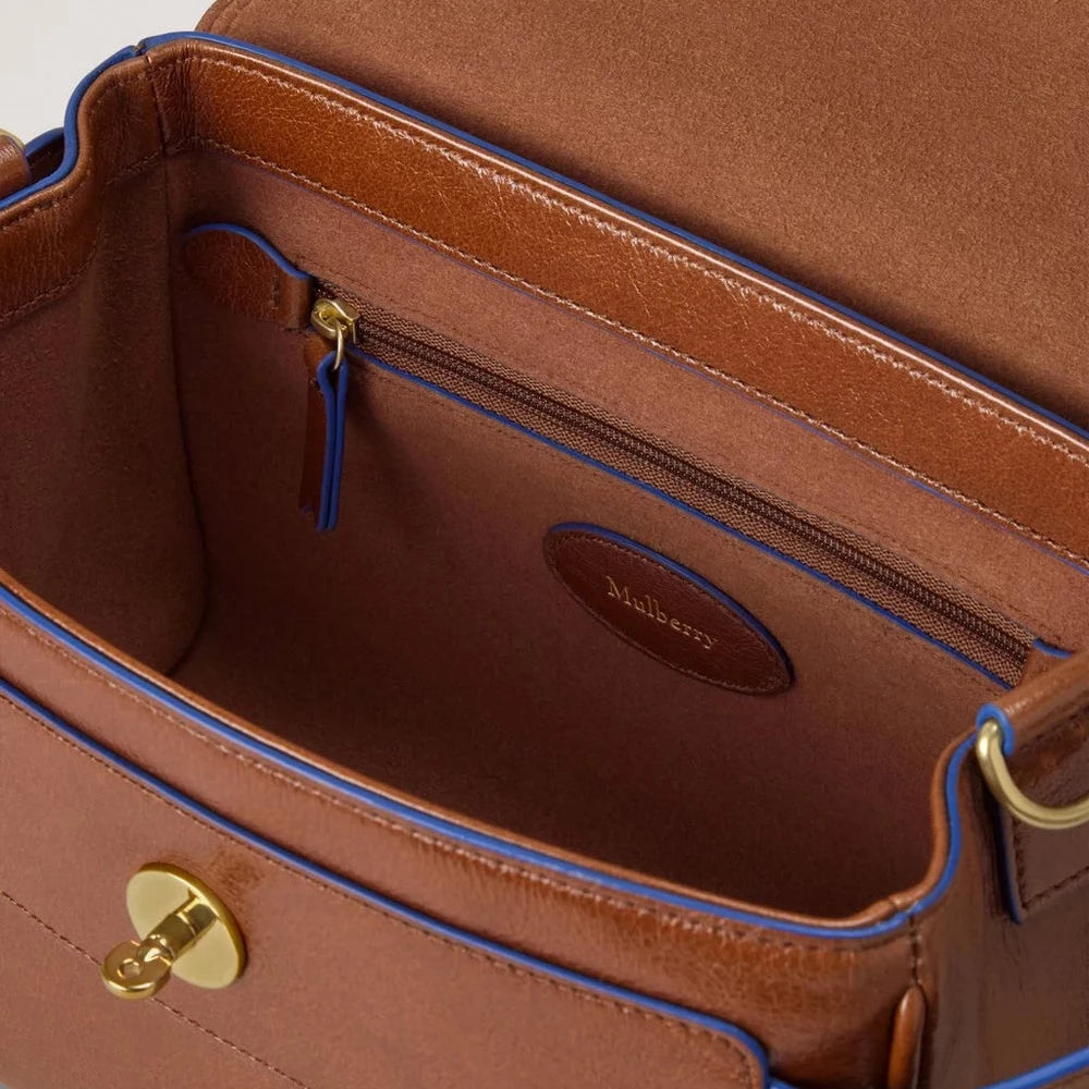 Mulberry Mini Alexa – Oak & Pigment Blue / Smooth Glossy Leather: