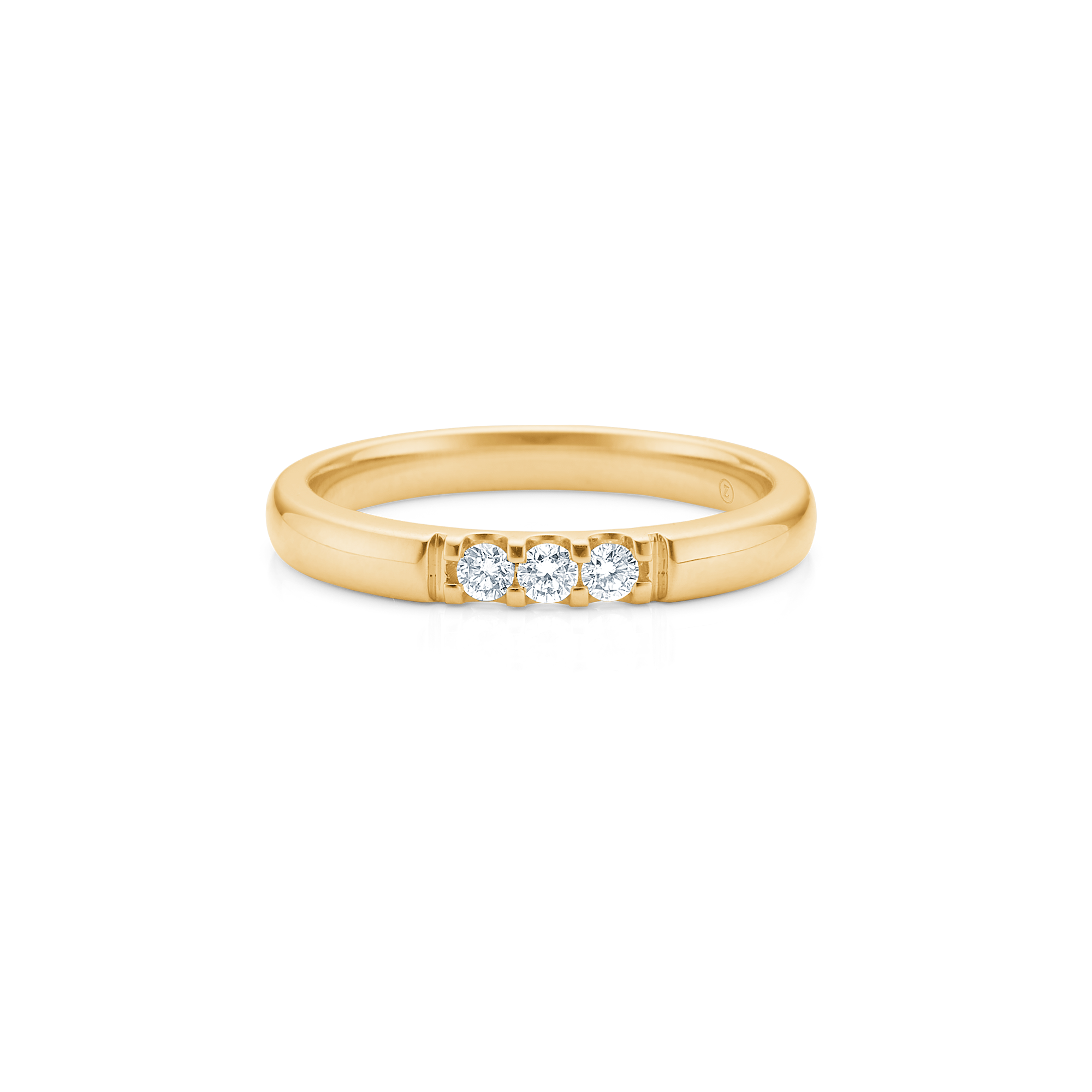 Mads Z Ophelia ring in 14 carat gold is a classic and elegant diamond ring with a clean and stylish expression. The three brilliant-cut diamonds of 0.04 ct each (total 0.12 ct) in quality W/SI sit beautifully in a row and create a harmonious and balanced design.