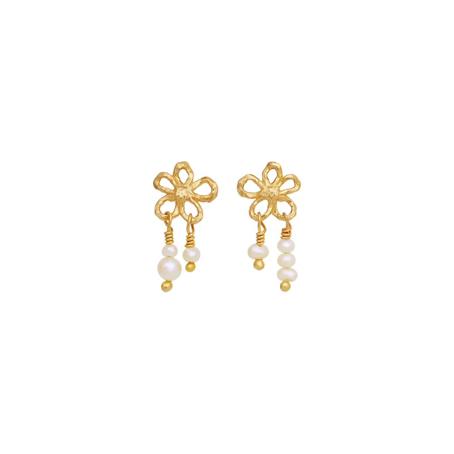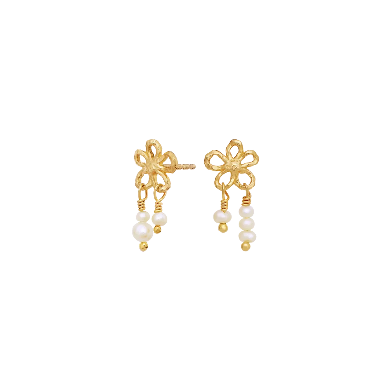 A pair of light and summery flower earrings from Maanesten - created to carry the memories with glow and pearly elegance.