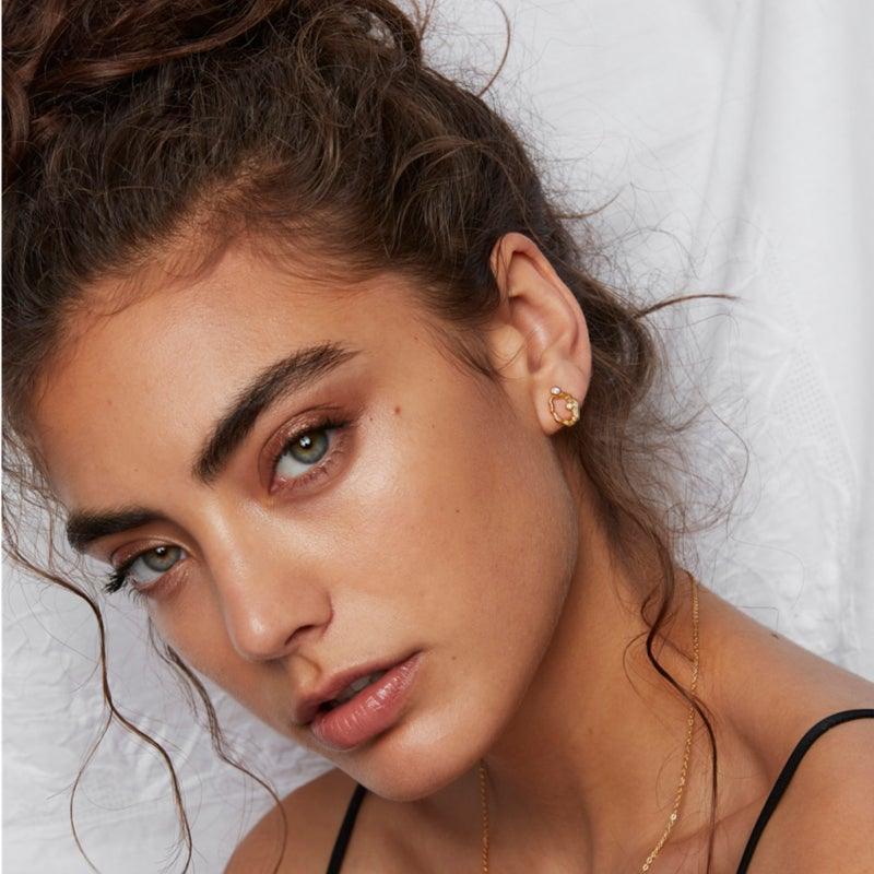 This beautiful ear stud is from the Aurora collection in gold-plated silver with white zirconia.