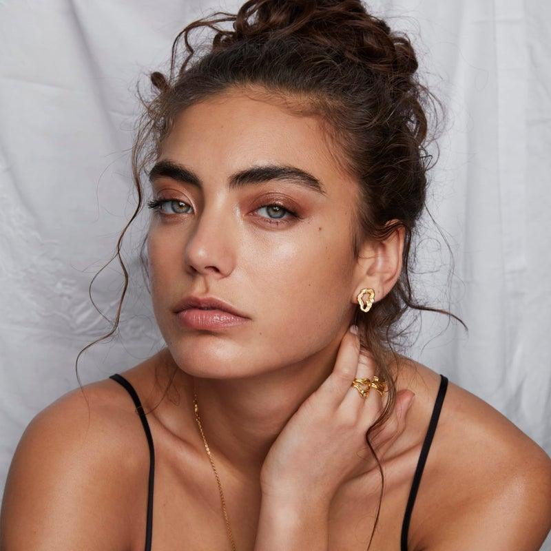 This beautiful ear stud is from Polar Jewelry's Aurora collection in gold-plated silver with white zirconia.
