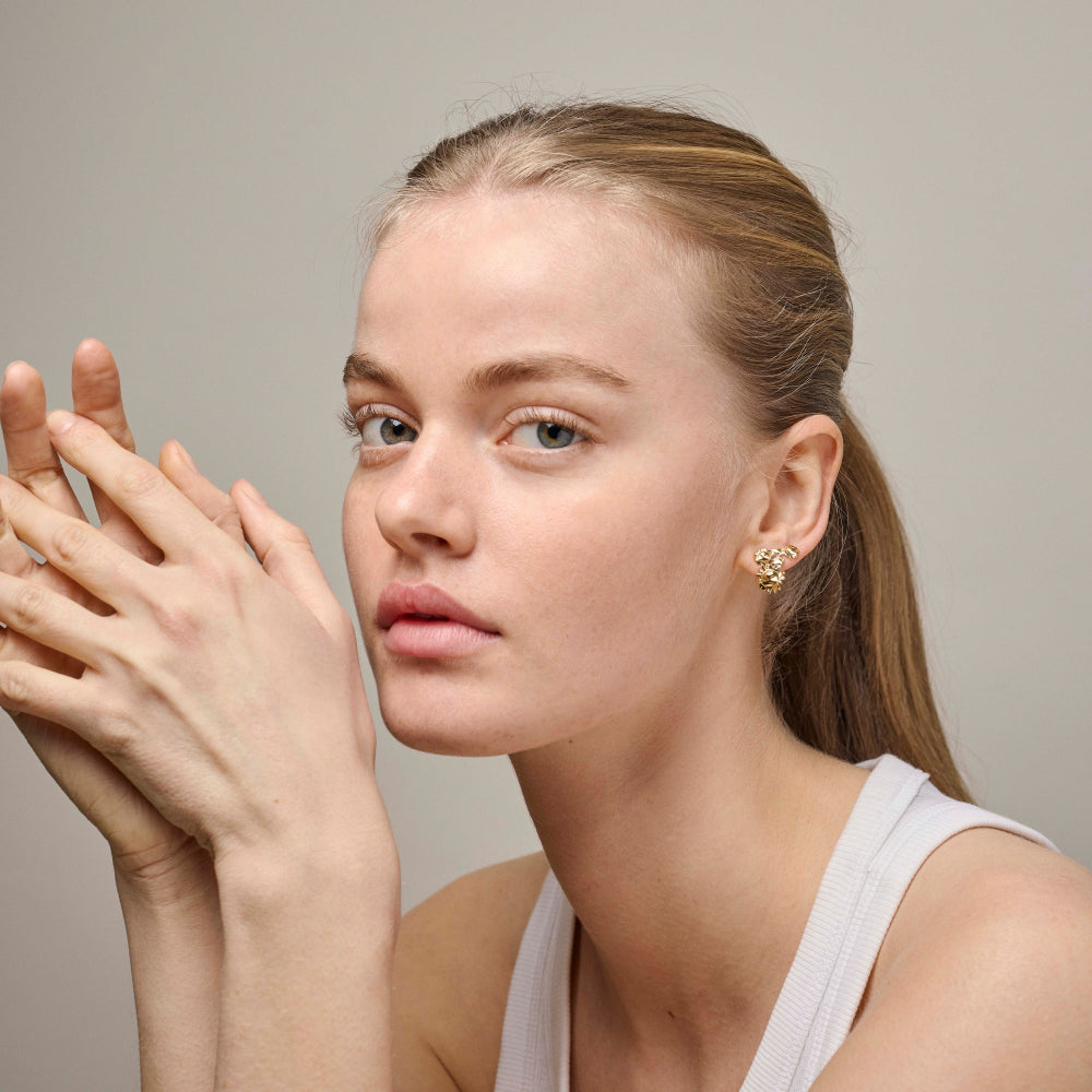 Bring the summer with you with the Sunshine Field earrings. The golden sunflowers elegantly creep up the ear like a flower meadow in full bloom. Extravagant and eye-catching - the perfect choice for summer parties.