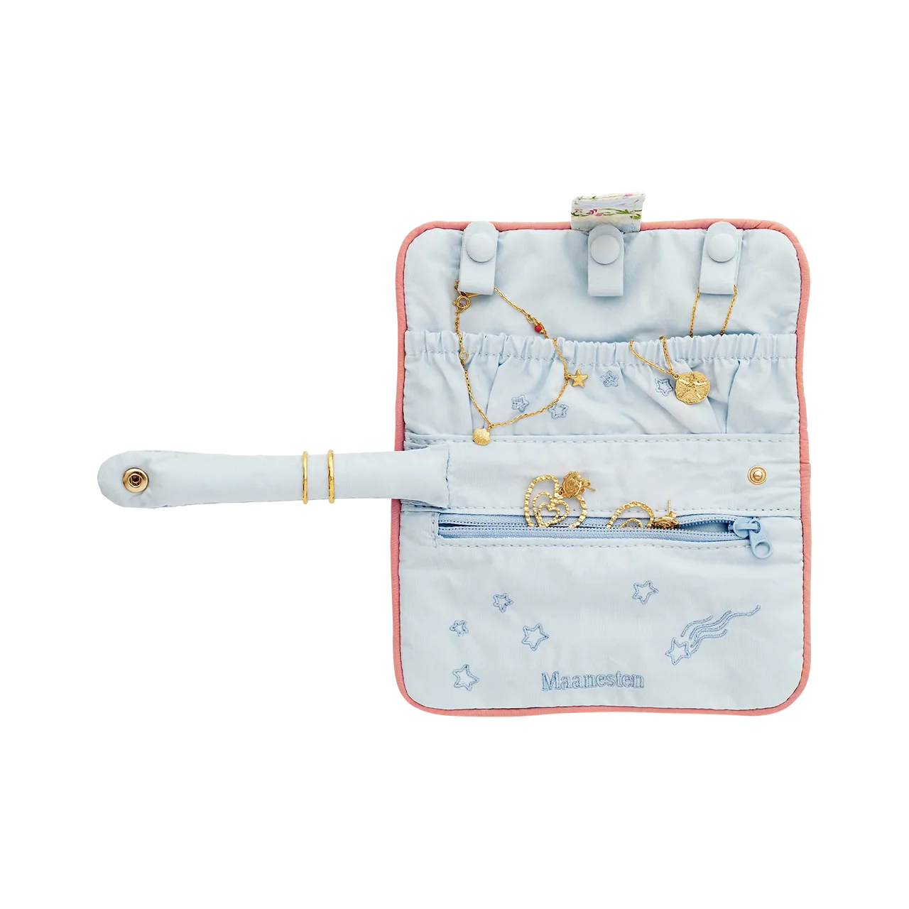 The clutch is perfect for travel, weekend trips or as permanent storage at home, so that your necklaces, rings and earrings avoid tangling. Part of the Maanesten SS26 collection with a focus on the season's colors and feminine details.