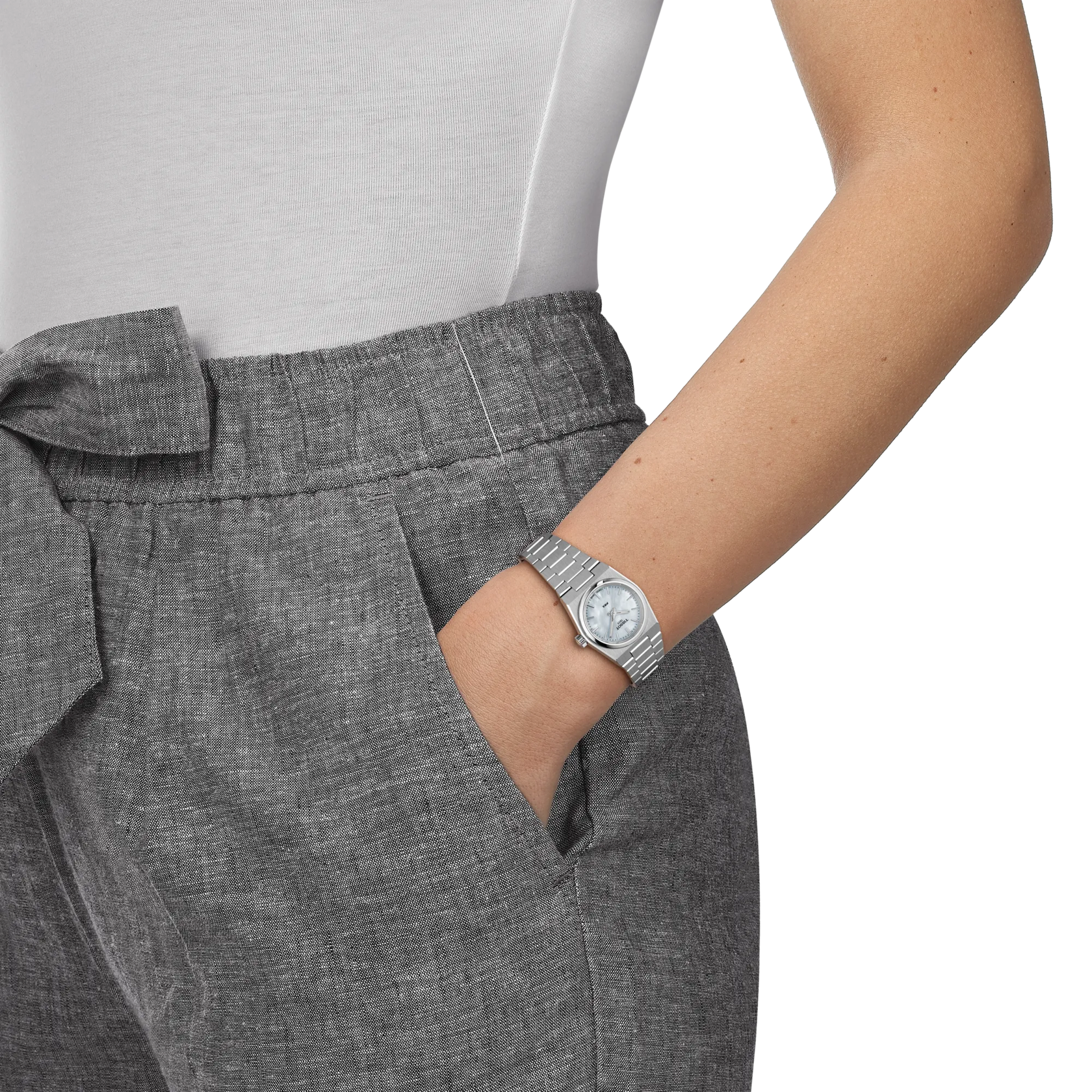 TISSOT PRX 25MM – STÅLLÆNKE / HVID PERLEMOR: