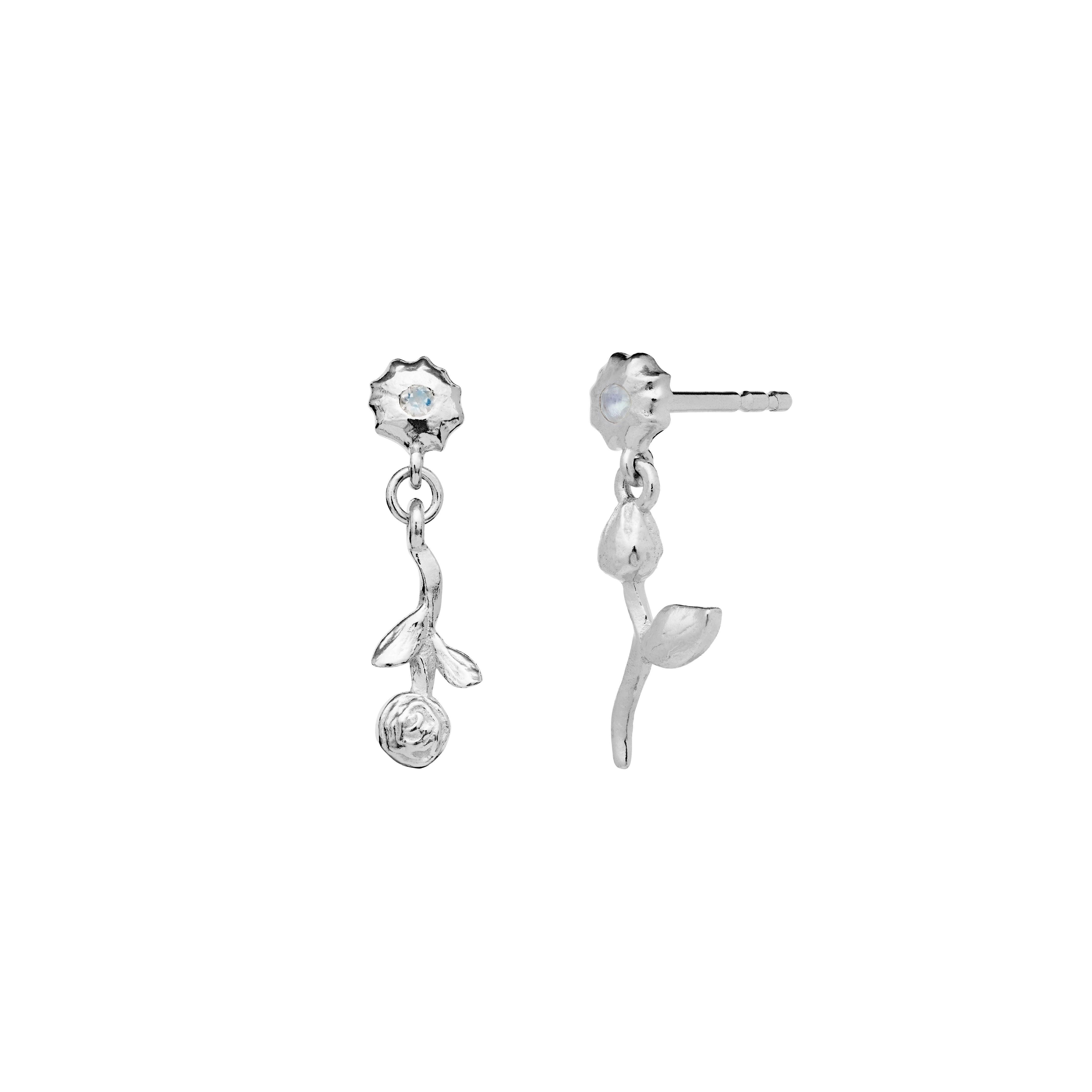 Moonstone Amaria Earrings – Flowers in 925 Sterling Silver with Rainbow Moonstone: