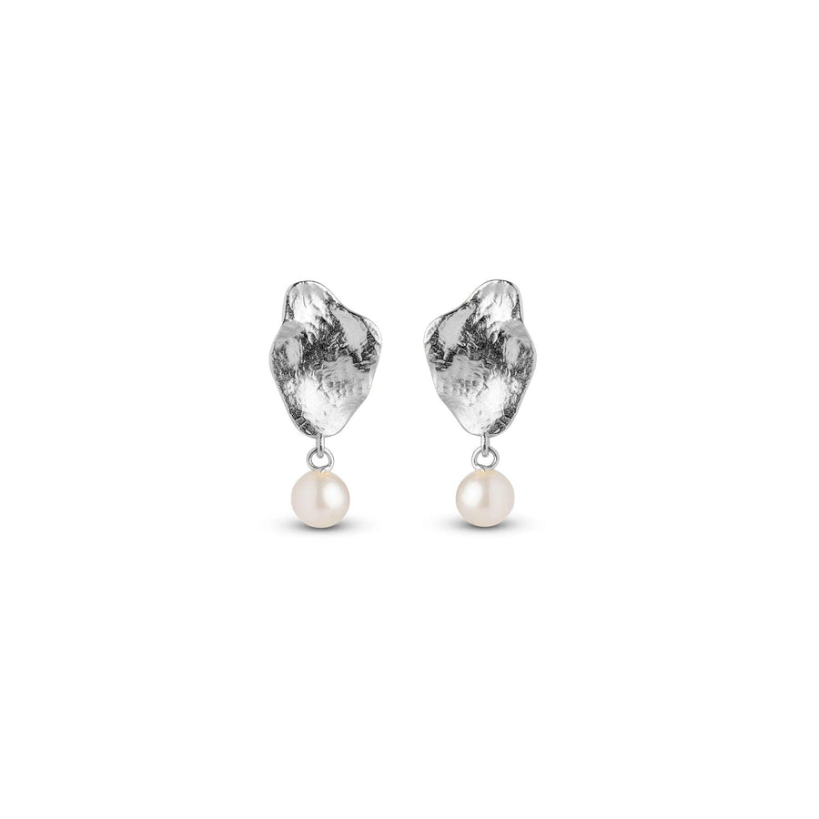 Caia small in silver from Enamel are beautiful single and really fine earrings, they come with beautiful freshwater pearls, the pearl hangs beautifully from a handmade wavy plate, can especially be used with a pair of small fine ear studs, if you has 2 holes.