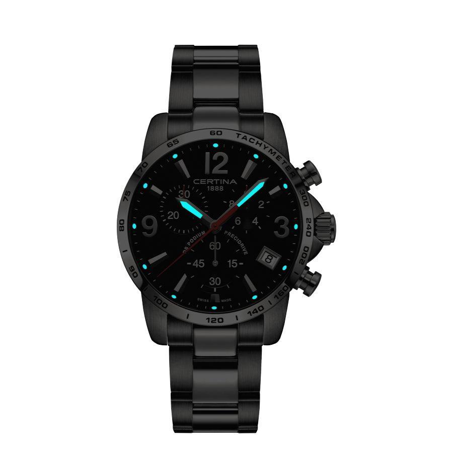 Certina DS Podium with steel chain and a nice and stylish black dial. The watch has a chronograph movement, which gives the watch a nice sporty design. The watch has a date display and clear hour and minute markings. A delicious everyday watch, which is also so stylish that it can also be used for special occasions.