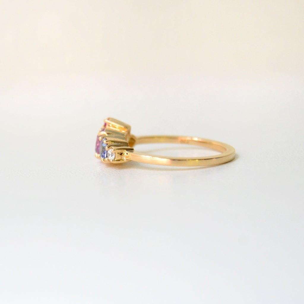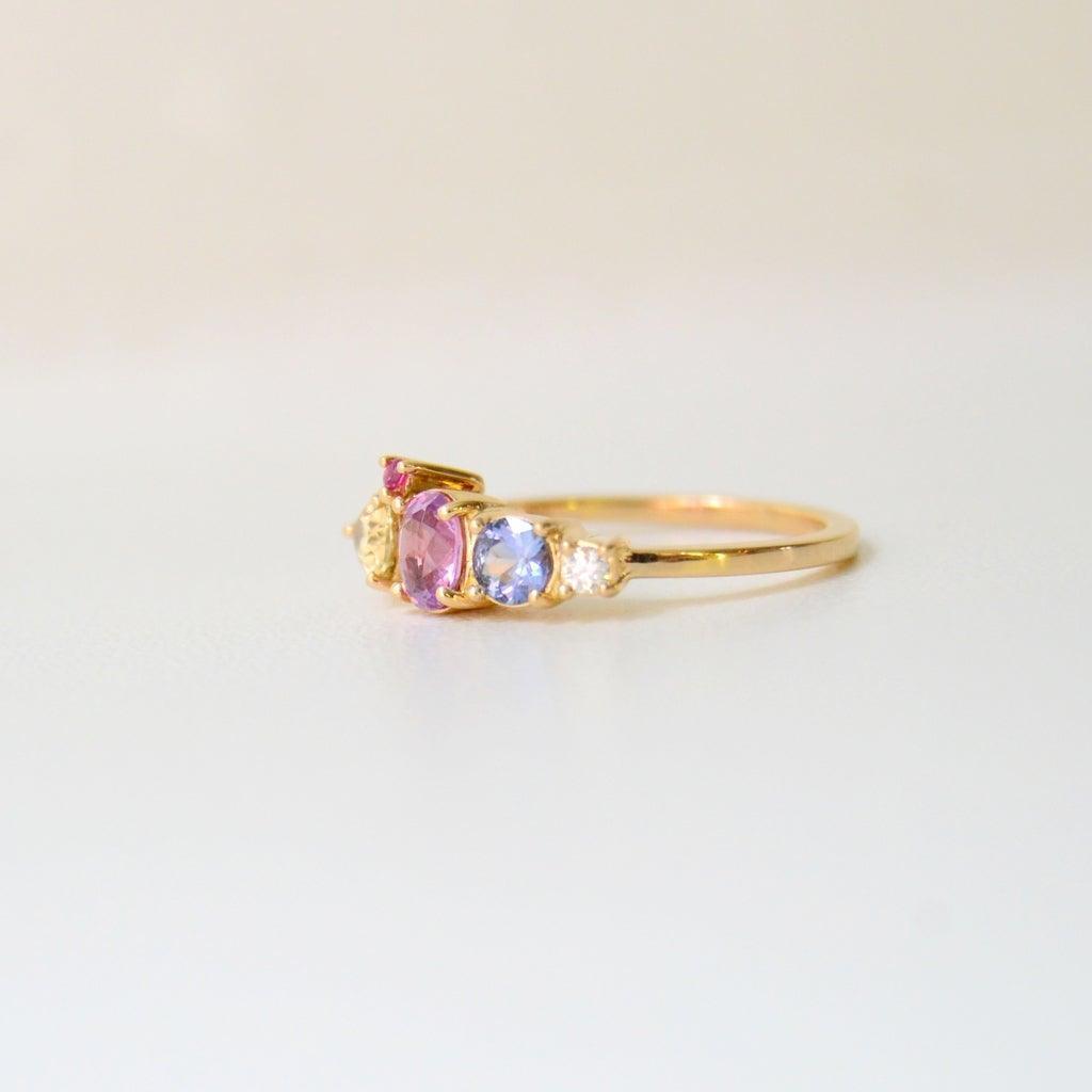 The Varnaya ring is from the Classic Complexity collection in 18kt gold. In the ring are beautiful natural sapphires and a Diamond. The ring is unique as no two natural stones are alike.