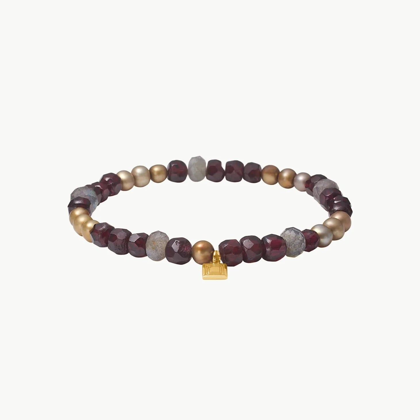Carré Simone Bracelet with Garnet, Golden Pearl and Labradorite – Gold Plated: