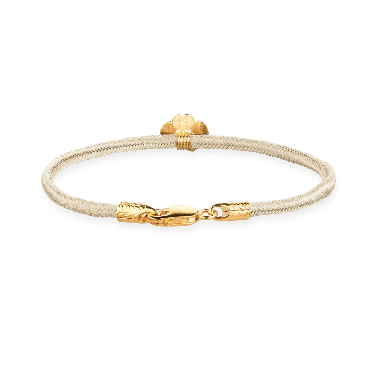 Flora Danica Four-leaf clover silk bracelet in champagne and 22k gold-plated silver is a unique tribute to Danish and Japanese culture, created with care by skilled craftsmen in Kyoto, the city with an honorable past as an imperial capital.