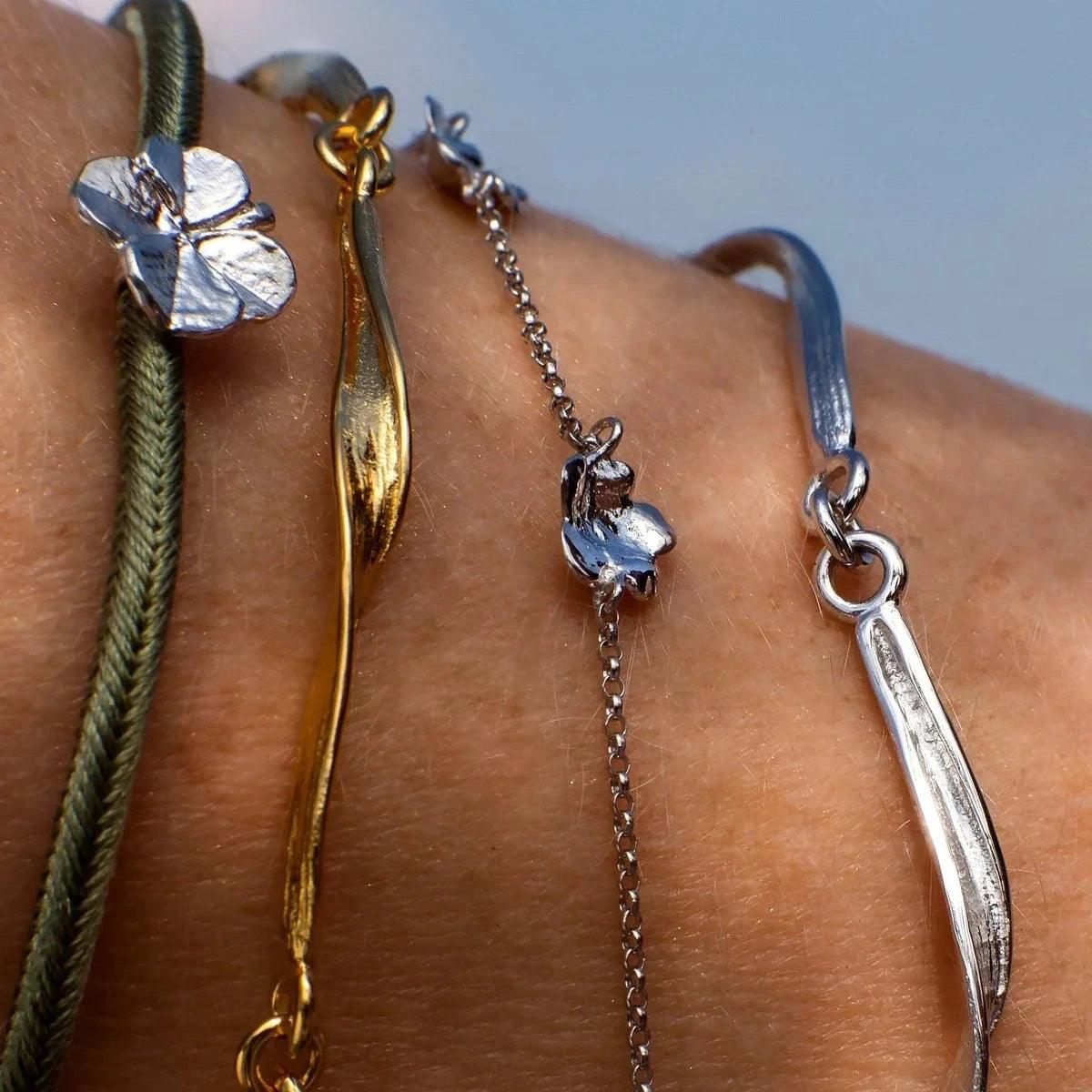 Flora Danica Four Leaf Clover Silk Bracelet Olive - Silver