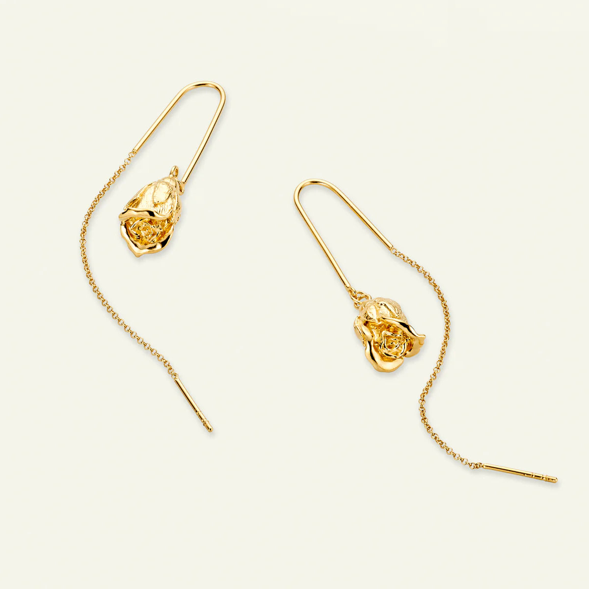 Den lille rose hænger let og smukt fra en fin kæde, som giver bevægelse og et let, sofistikeret look. Øreringene er perfekte både til hverdag og særlige anledninger, hvor de tilfører et diskret, men eksklusivt touch.