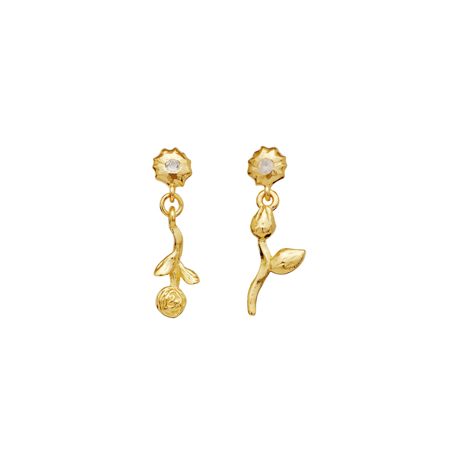 Moonstone Amaria Earrings – Flowers in 18 kt Gold Plated Silver with Rainbow Moonstone: