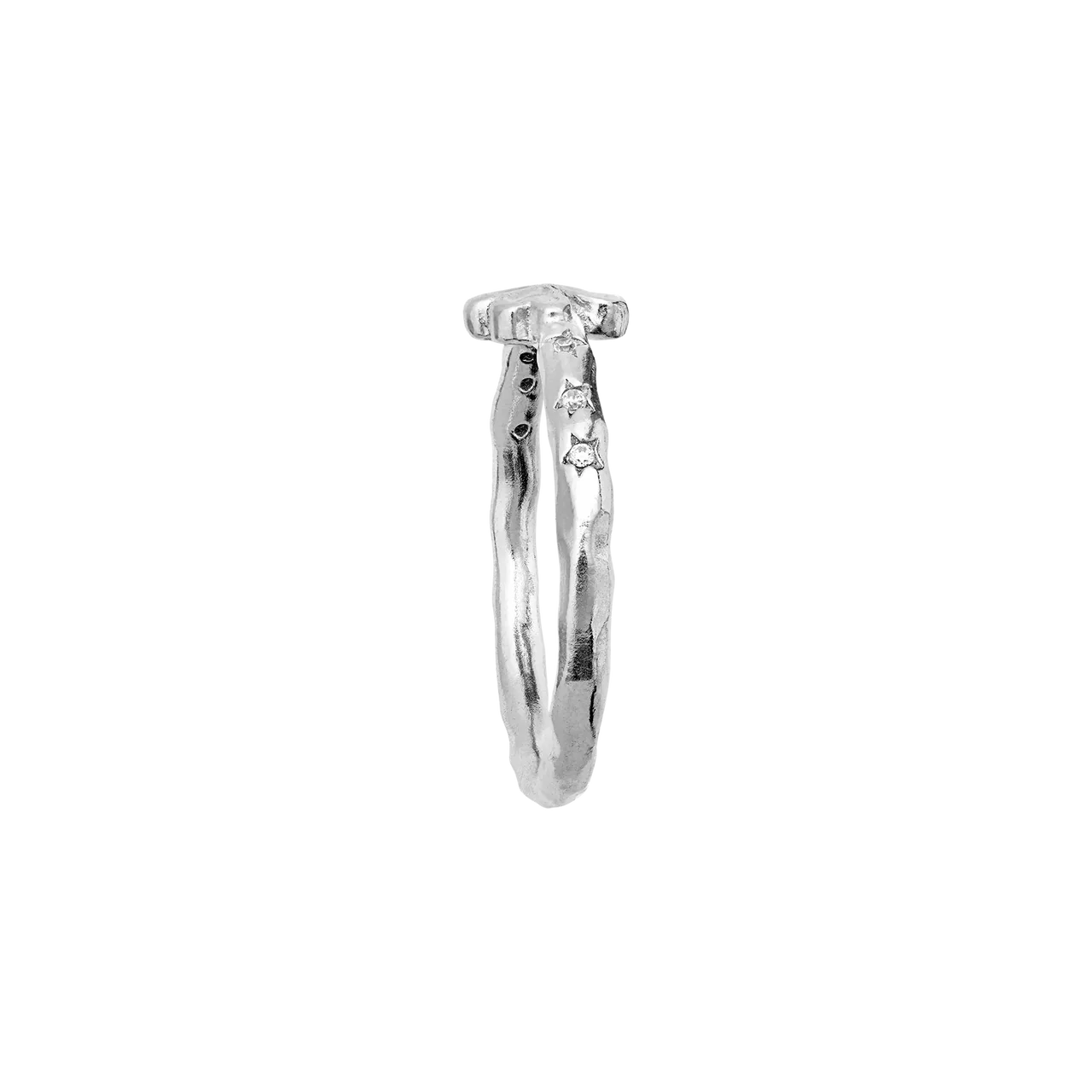 The sparkling white zirconia adds a discreet glimmer that gives the ring a feminine and elegant look. Perfect to wear alone as a small symbol of good luck or with other rings for a more personal look. Part of the Maanesten SS26 collection with a focus on symbolism and fine details.