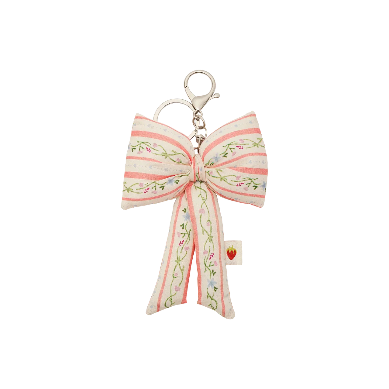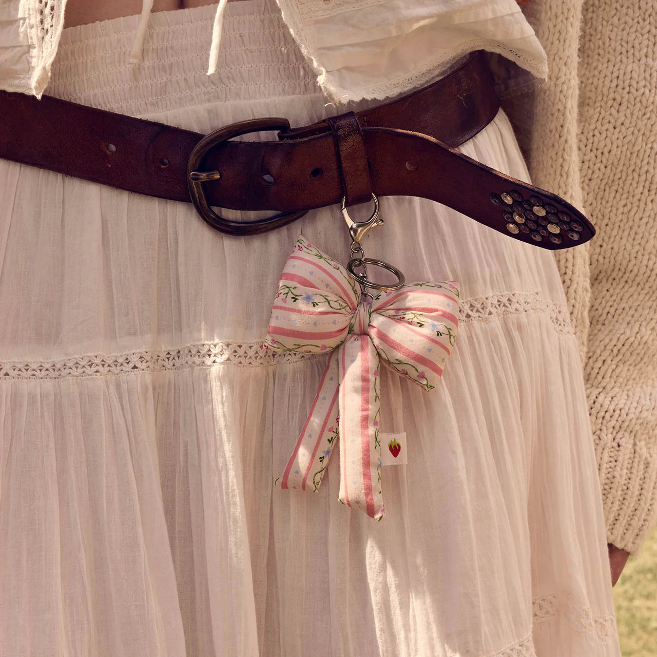 Maanesten Fabric Bow Nøglering – Summer Stripes Peach: