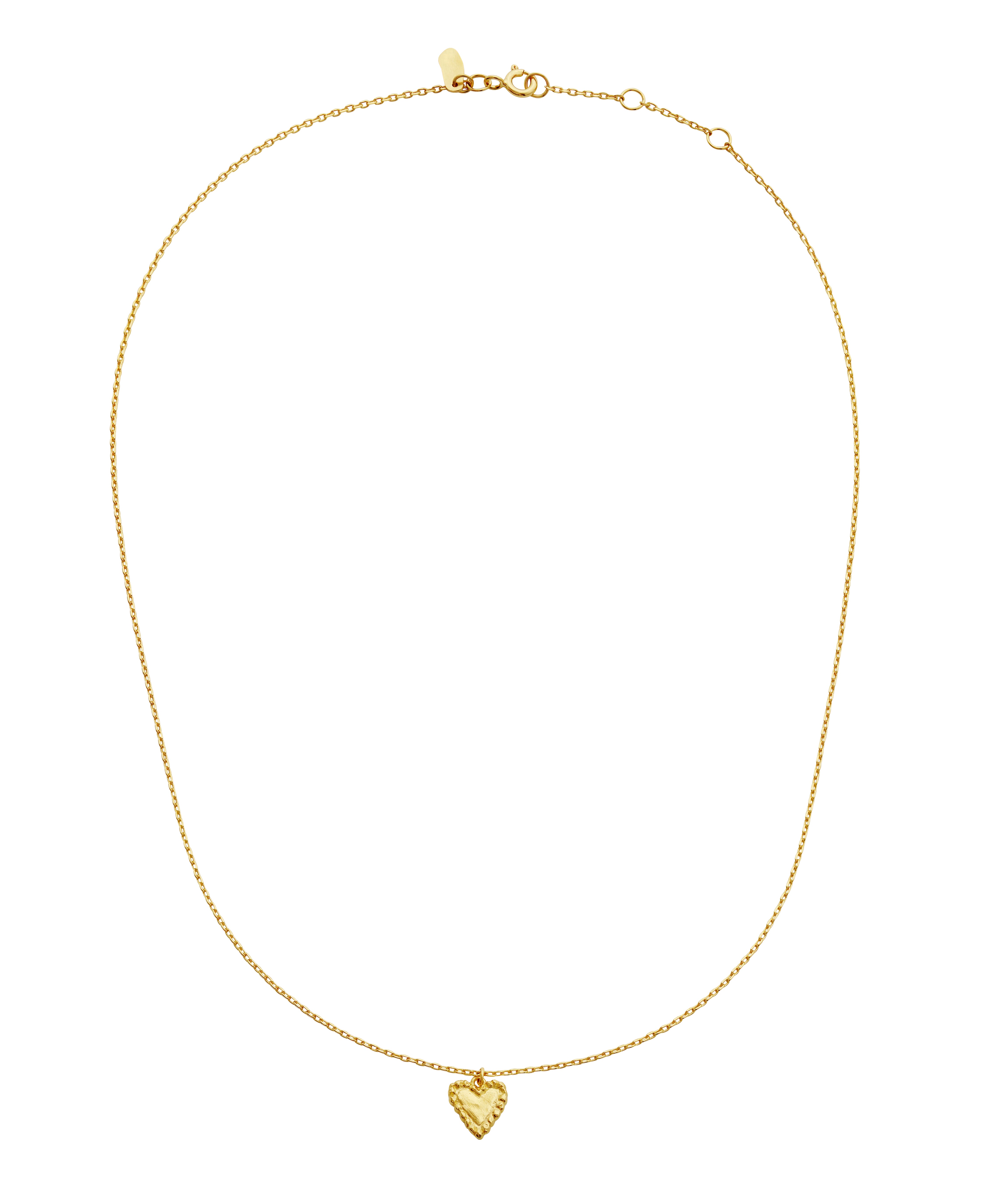 Fatale halskæden fra Maanesten er skabt til at betage. Det gyldne hjertevedhæng har et lokkende og blødt udtryk, der inviterer dig til at følge dit hjerte og bære det tæt på. En elegant og feminin halskæde, der både kan stå alene eller styles sammen med andre kæder for et mere personligt look.