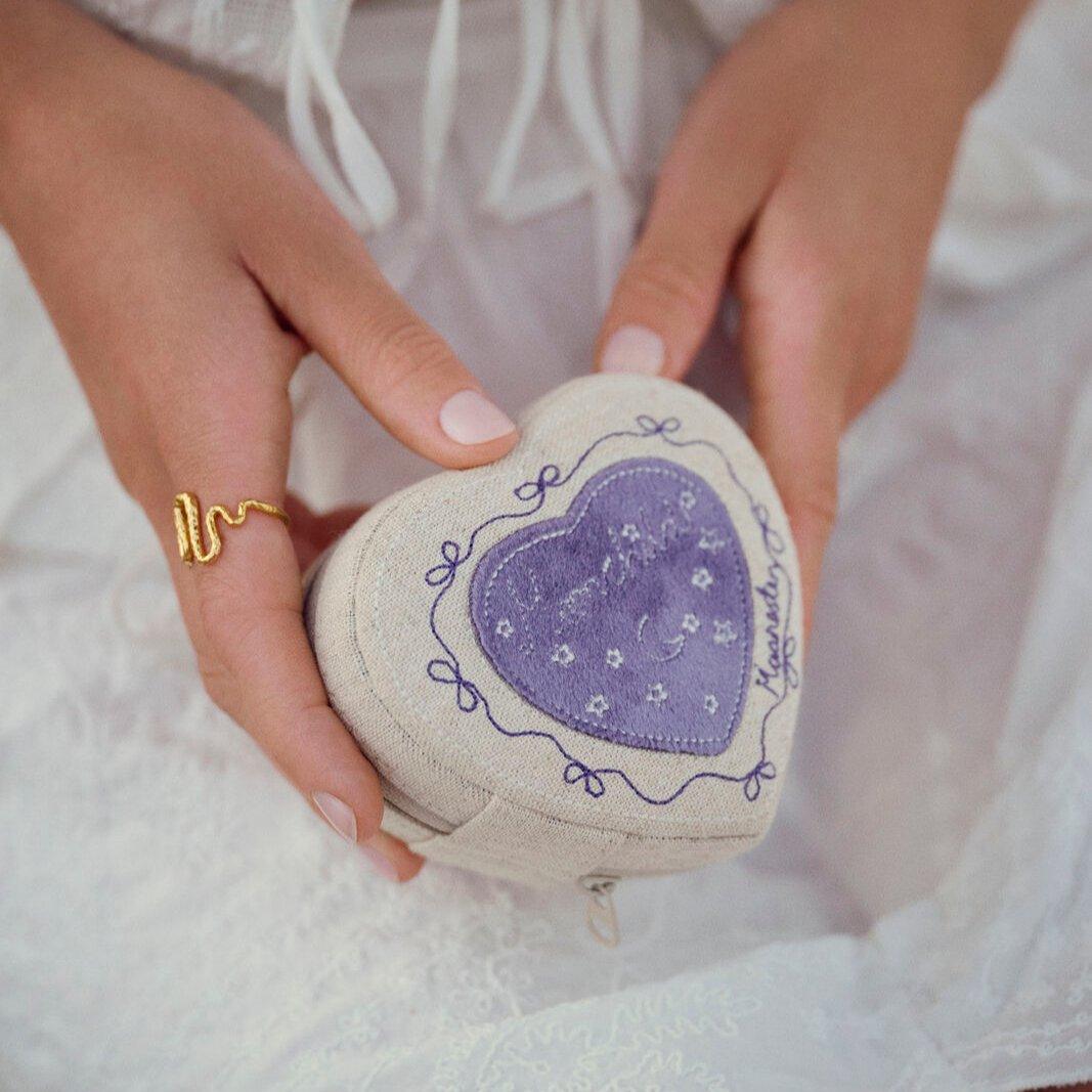 Moonstone Heart Jewelry Box Sand Heart-shaped jewelry box with floral lining: