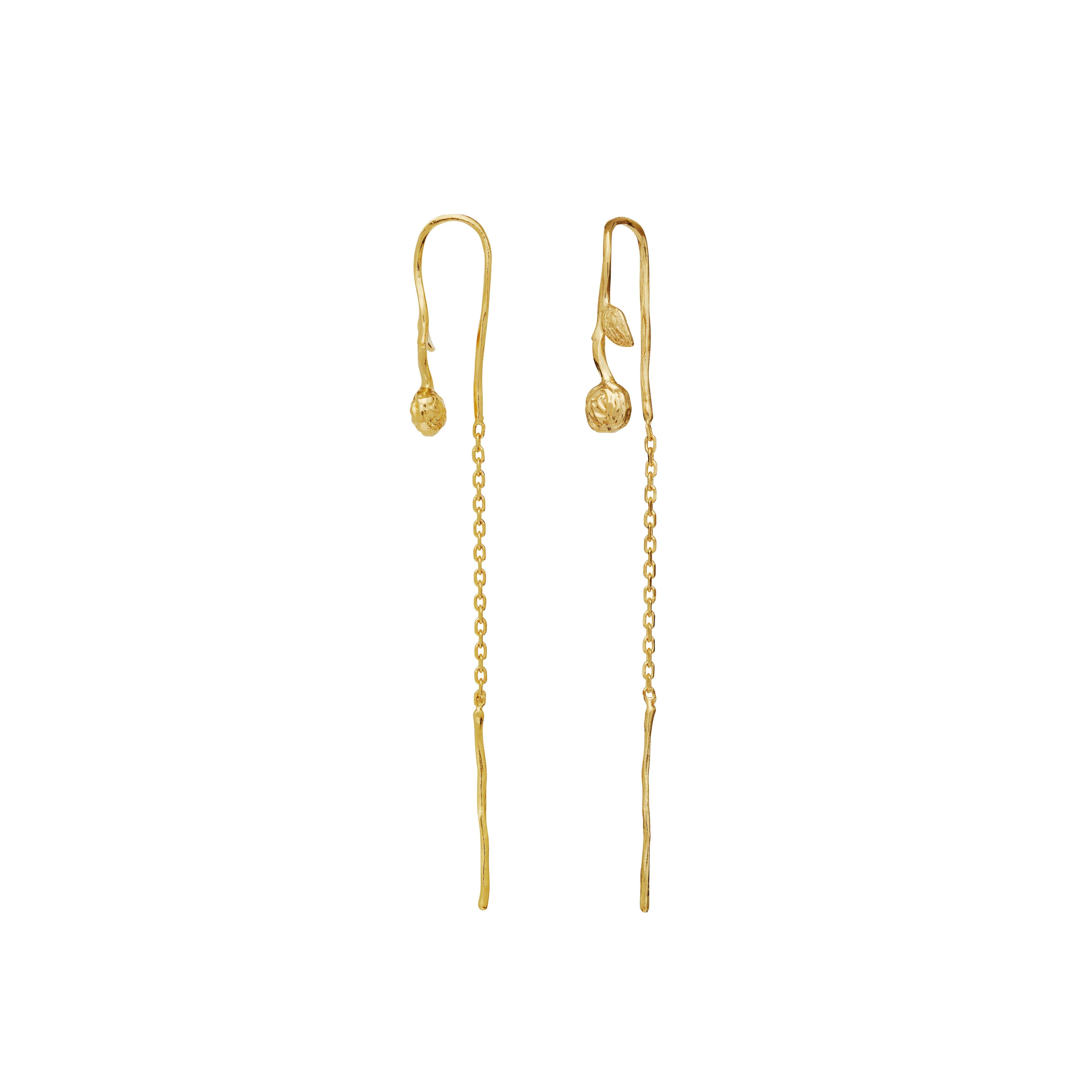 The moon Junia Earrings are a beautiful tribute to the beauty of youth. The long, swaying design creates a feeling of lightness, while the delicate rose buds and organic shapes add a natural, romantic expression. The earrings are made of 18 kt gold-plated 925 sterling silver and have a unique balance between structure and movement.