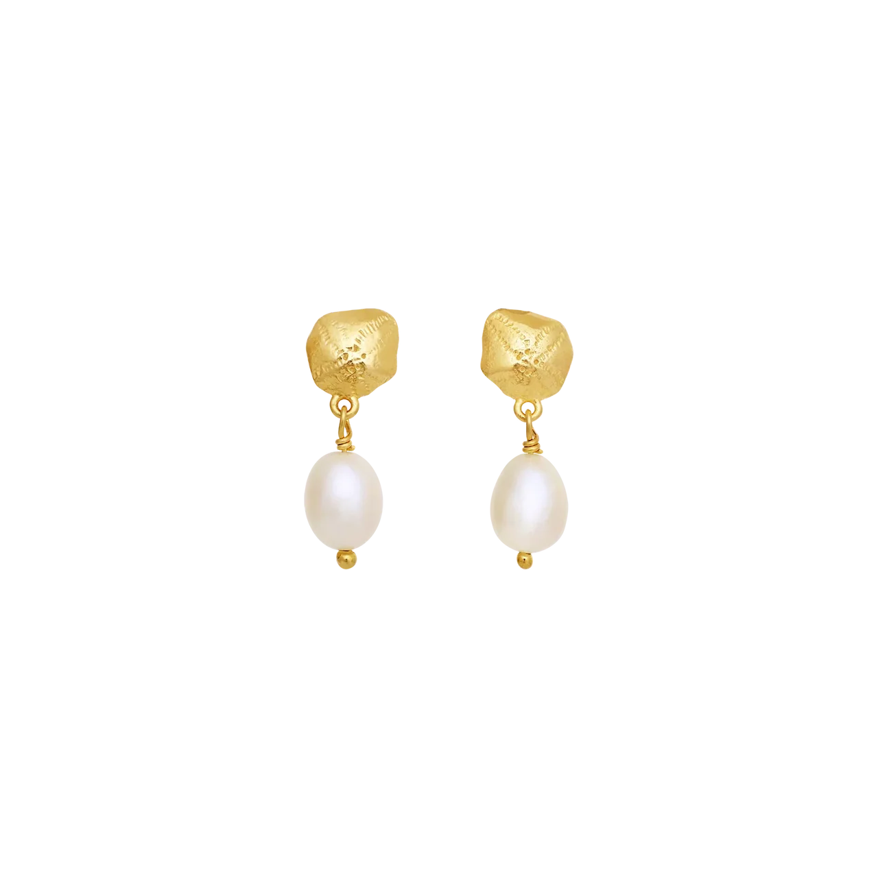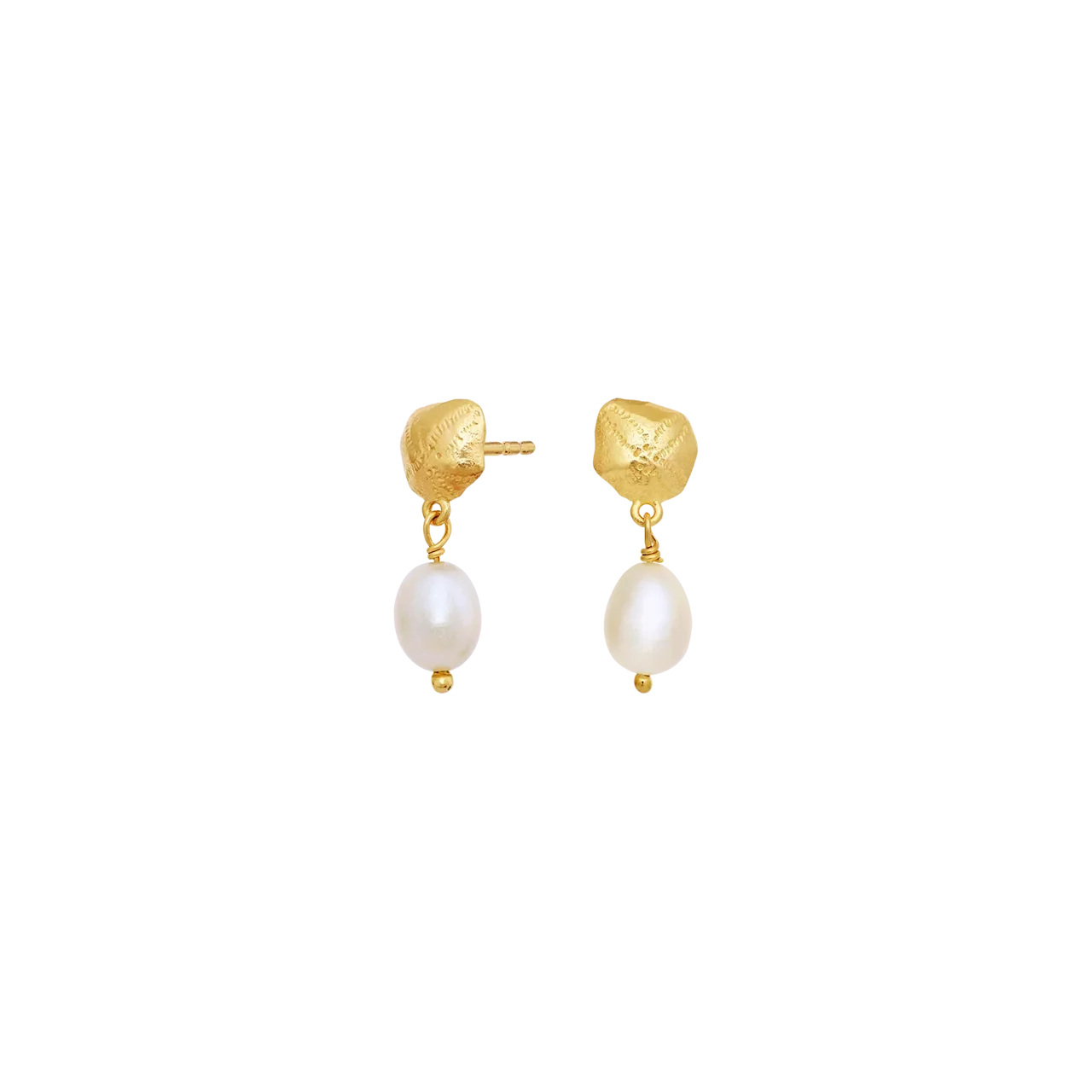 Den fine ferskvandsperle tilfører et blødt og naturligt skær, mens den varme 18 kt. forgyldning giver øreringene en gylden glød og et elegant udtryk. De er lette at bære og passer perfekt til både hverdag og særlige øjeblikke. En del af Maanesten SS26 kollektionen med fokus på nostalgi, symbolik og sommerens lethed.