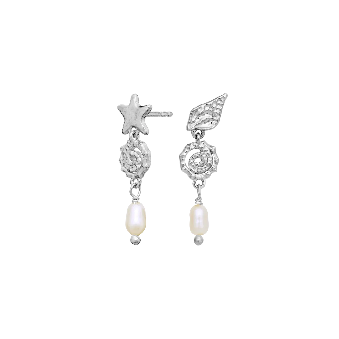 At the bottom, the design is completed by an elegant freshwater pearl, which provides easy movement and a soft, natural sheen. The cool silver finish highlights the structures and creates a more understated but still brilliant expression. Part of the Maanesten SS26 collection with a focus on symbolism, light and summery lightness.
