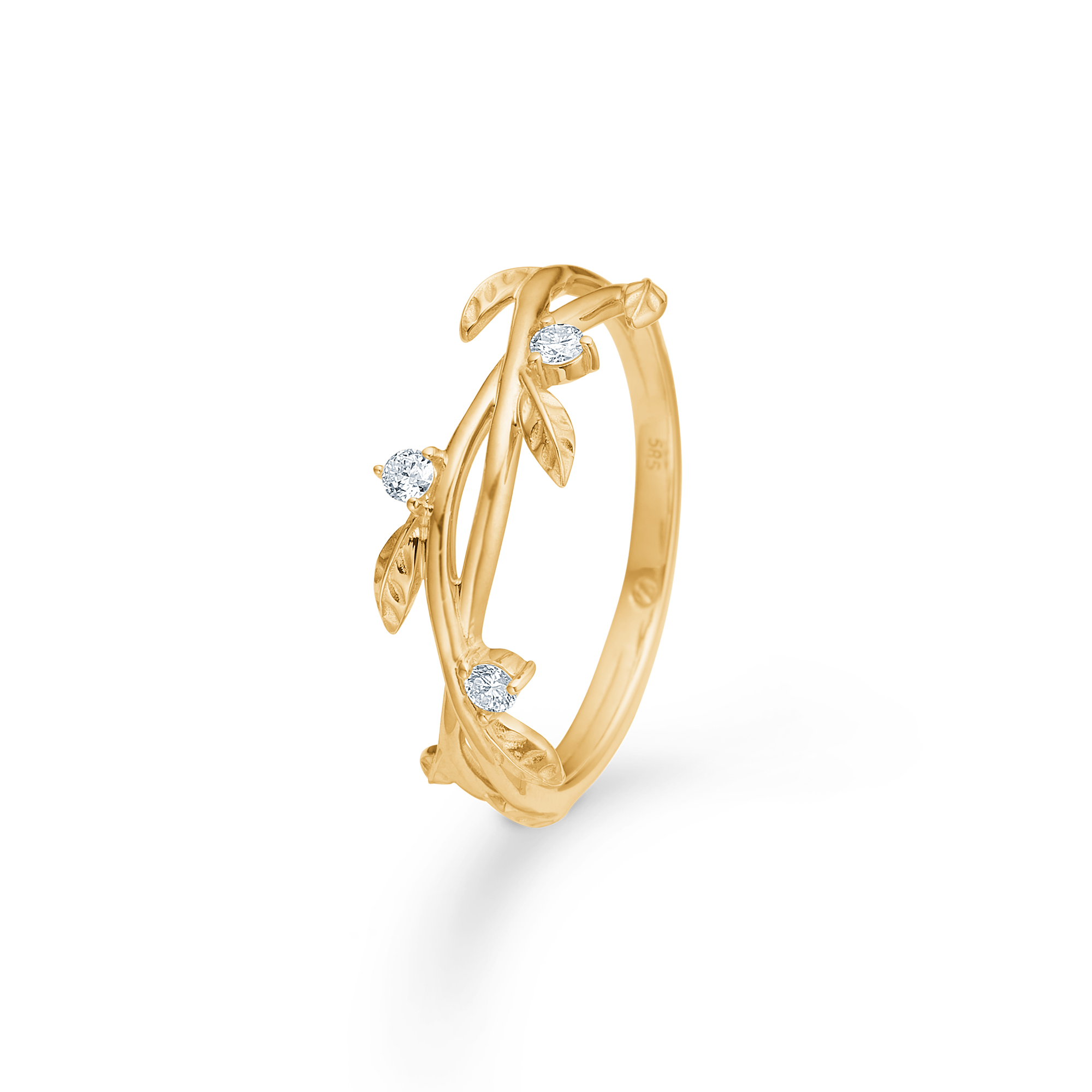 The Aura ring from Mads Z is an elegant example of modern Danish jewelery design. It is created in 14 carat gold and adorned with a brilliant-cut diamond of 0.10 ct. in Wesselton SI quality, beautifully placed in a classic grab handle. The design is inspired by the organic forms of nature, where the soft curves are reminiscent of branches and leaves that meander naturally. The result is a gold ring with a diamond that combines timeless beauty, luxurious craftsmanship and a personal story that you can wear every day.