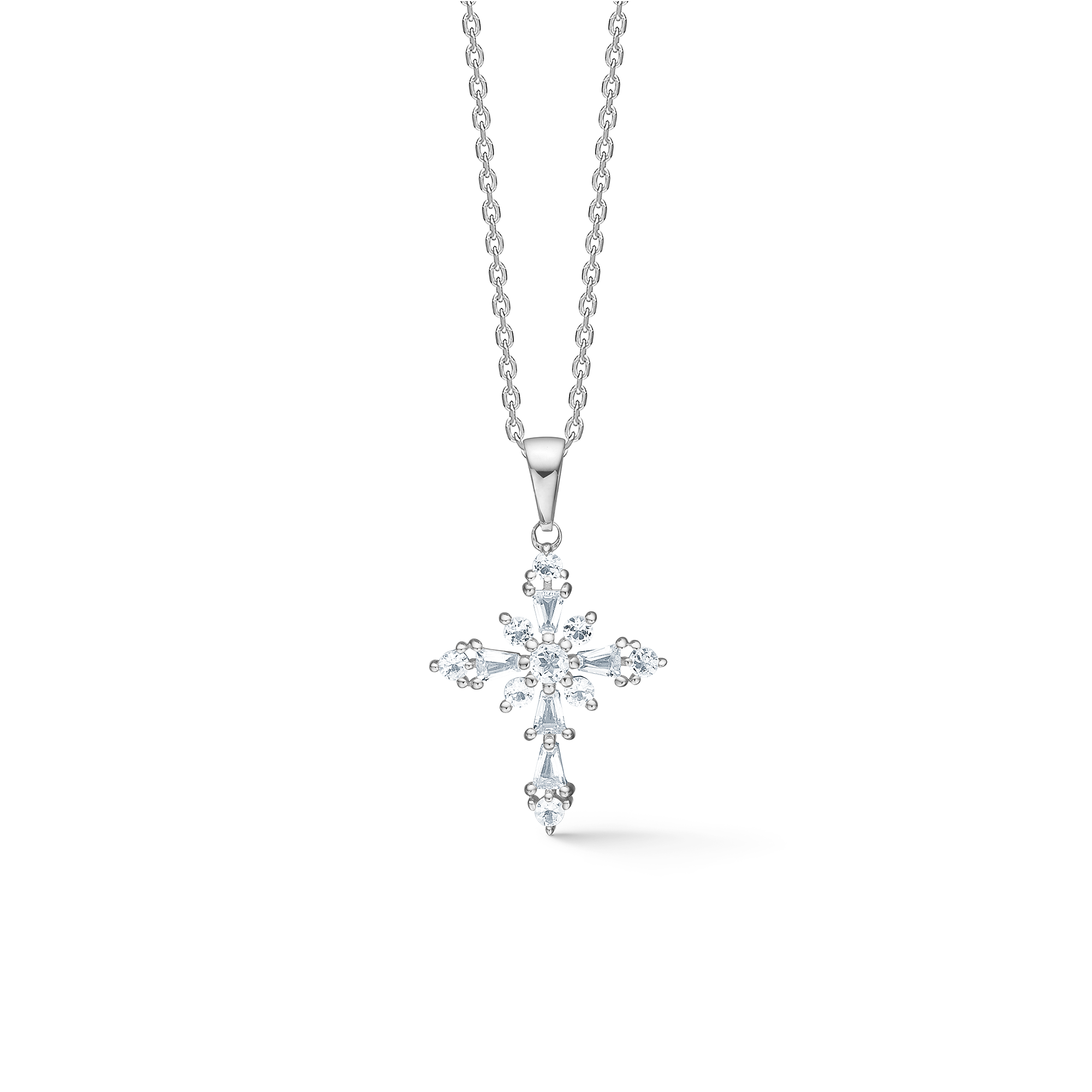 Let the magic of the night sky embrace your look with Celestial by Medina necklace. The jewelry is created in sterling silver and adorned with facet -cut white topazes that catch the light with a subtle, sparkling glitter. The graphically inspired pendant reflects the clear shapes of the stars and creates an elegant, modern expression.