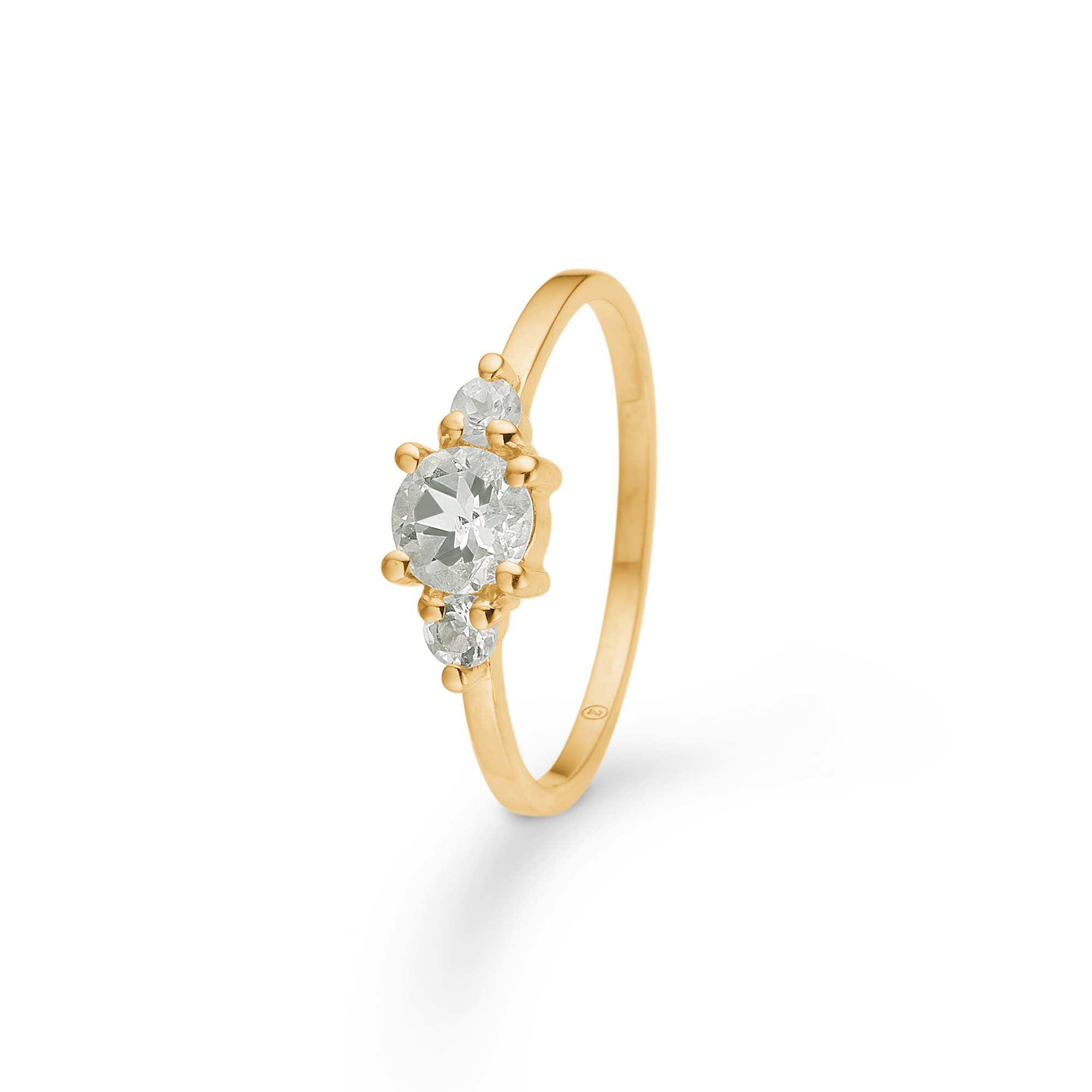 Each stone is placed in six grab sockets on a polished 8 carat gold band, which ensures both durability and comfort. The rounded hoop emphasizes the delicate balance, while the clear, green shades give a personal, unique expression - perfect as a statement ring, for stacking with other gold rings, or as an elegant accessory for special occasionsr.
