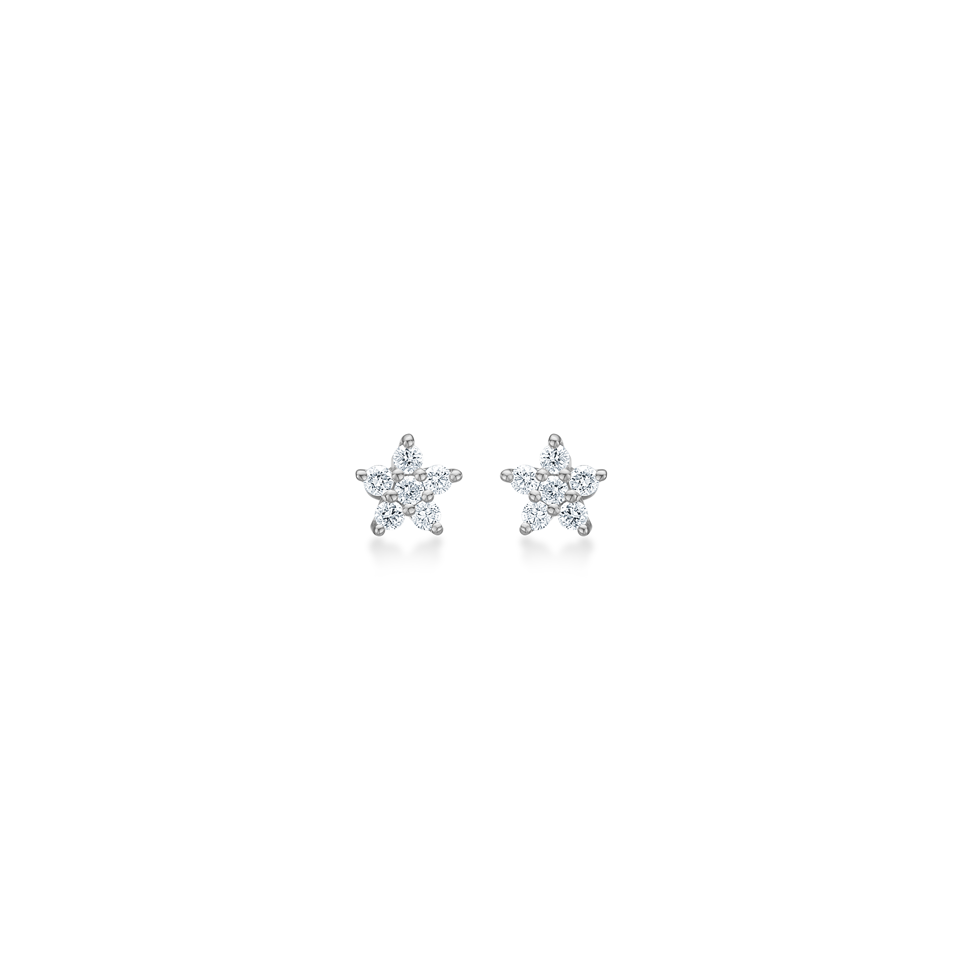Fine and elegant earrings in polished sterling silver with clear, faceted zirconia, arranged as a graphic rosette. The earrings measure 4 mm and combine minimalist design with subtle play of light.